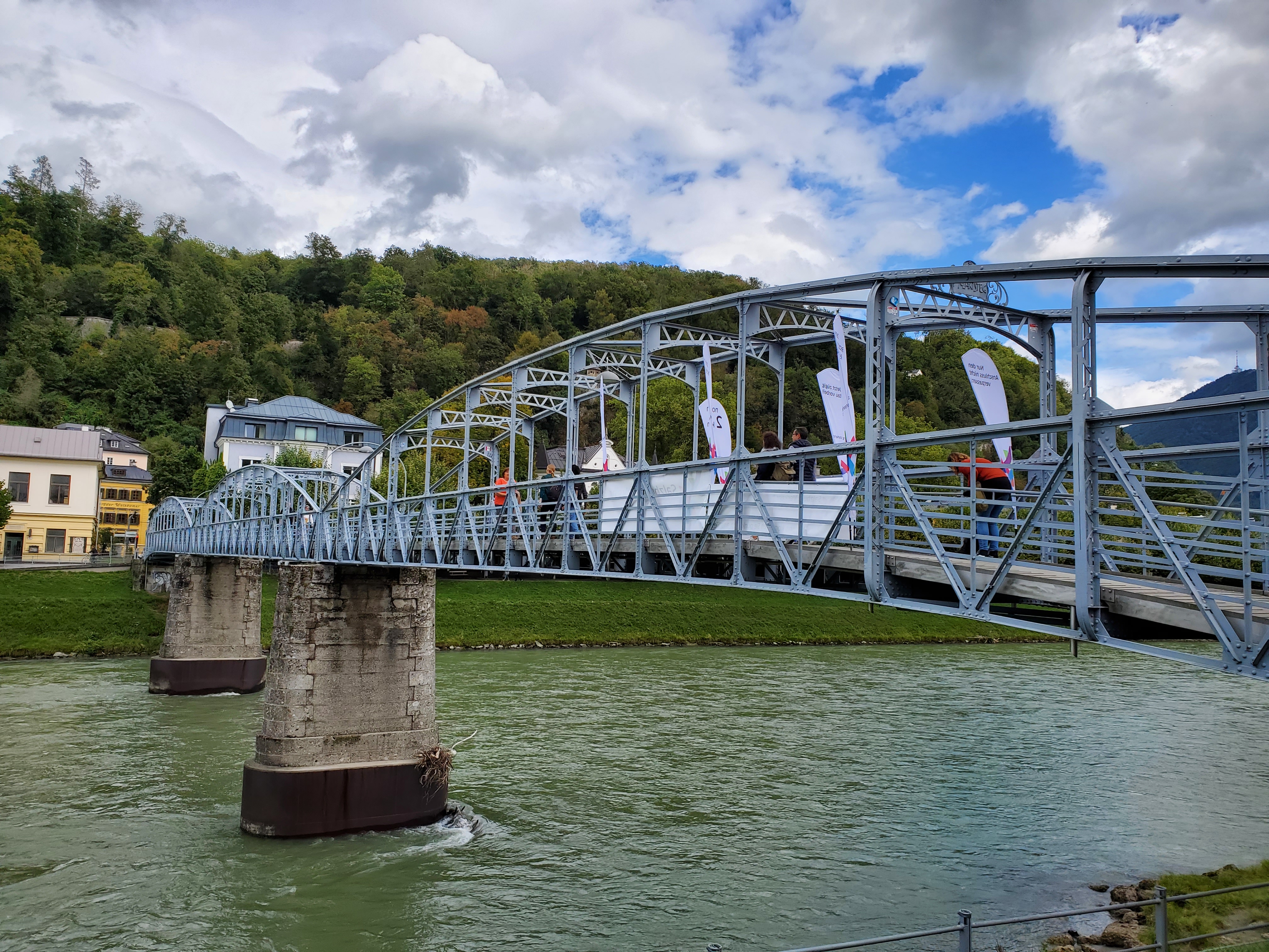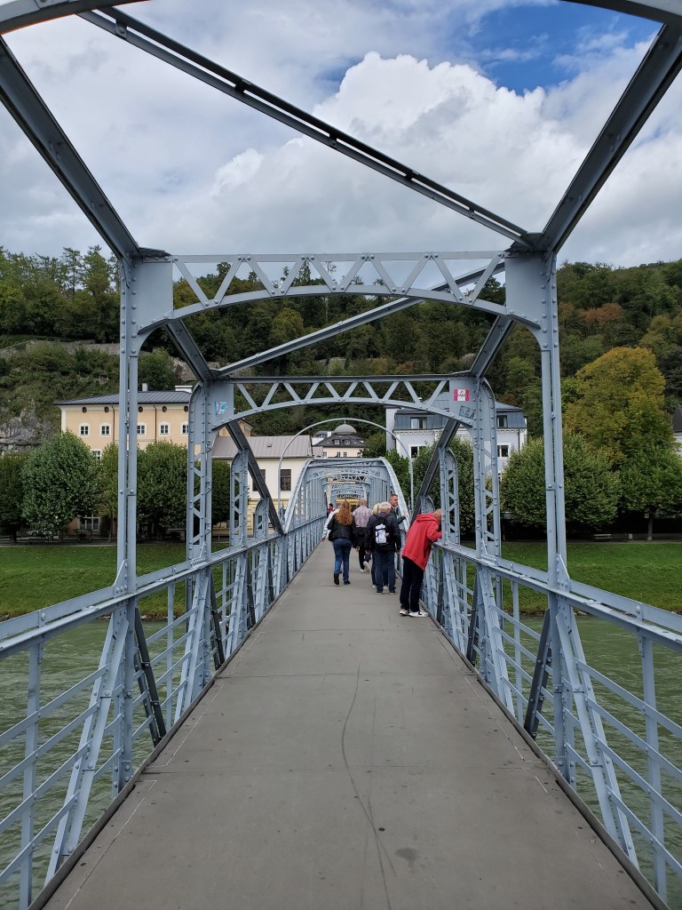 The walk began at the pedestrian bridge over the Salzac River, giving us views of New Town and Old Town. The river and city are named after the salt trade. For 2000 years barges carried salt from here to the Danube and then to the world. Today’s walk was Old Town so we’ll visit New Town another time. Salzburg has 38 Catholic churches, so beautiful old domes fill the skyline.