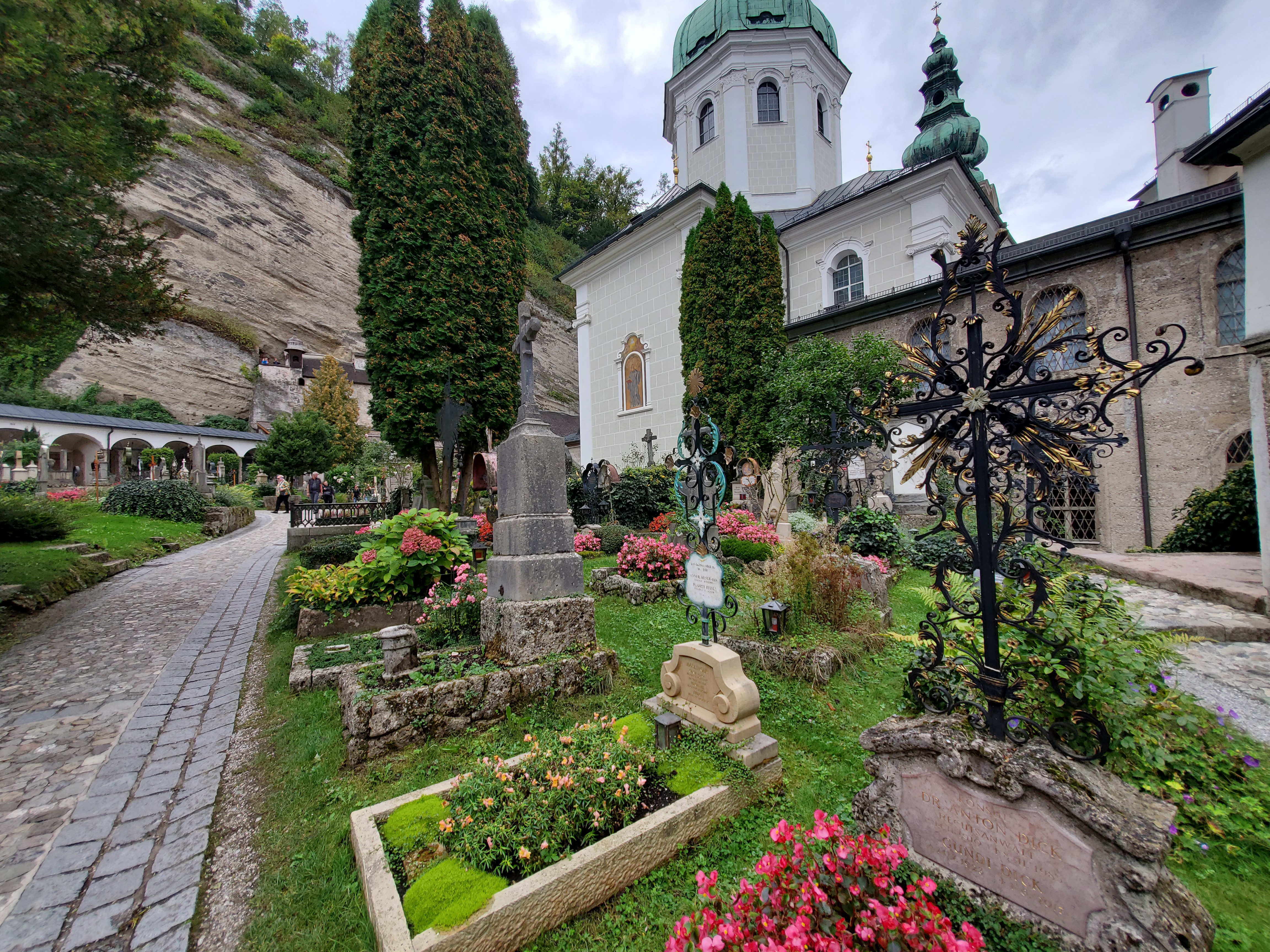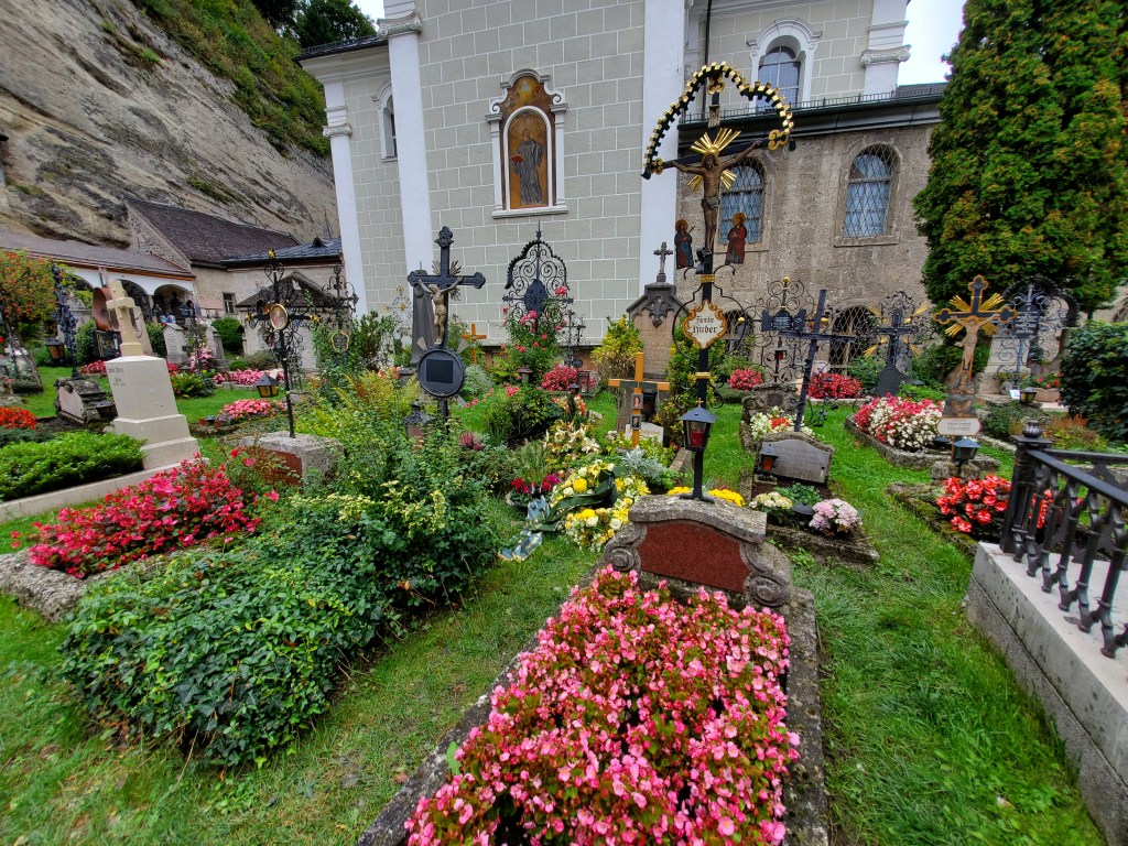 We especially loved Petersfriedhof, also known as St. Peter’s Cemetery. Each grave is like a mini garden filled with flowers and ornamental decorations. The graves are tended by descendants of the dead. In Austria, graves are rented, not owned. Bills are sent out every 10 years and if unpaid, tombstones are removed. The oldest tombstone is dated 1288, though the cemetery likely dates back to 700. The cemetery inspired the scene in Sound of Music where the Von Trapp family hid as they escaped the Nazis. That was actually filmed on a Hollywood movie set, but it was designed to resemble the cemetery.