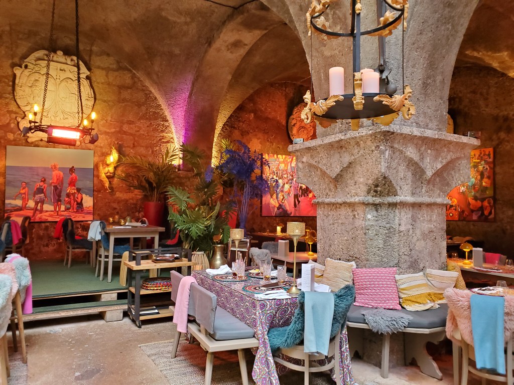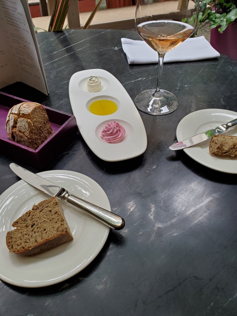 We stopped at a wonderful bar/restaurant with lots of character and had the most delicious rose wine we’ve ever tasted. The bar is adjacent to a restaurant that is believed to be the oldest in the world. St. Peter Stiftskulinarium dates back to before AD 803. It is mentioned in writings about Emperor Charlamagne. Christopher Columbus and Mozart both dined there. We hadn’t eaten lunch and it was late in the day, so we ordered a snack of a hearth bread and the spread of the day, which was beet-based. Since she loves all things beets, Betsy was thrilled. It was a puree of beets combined with some type of cheese.