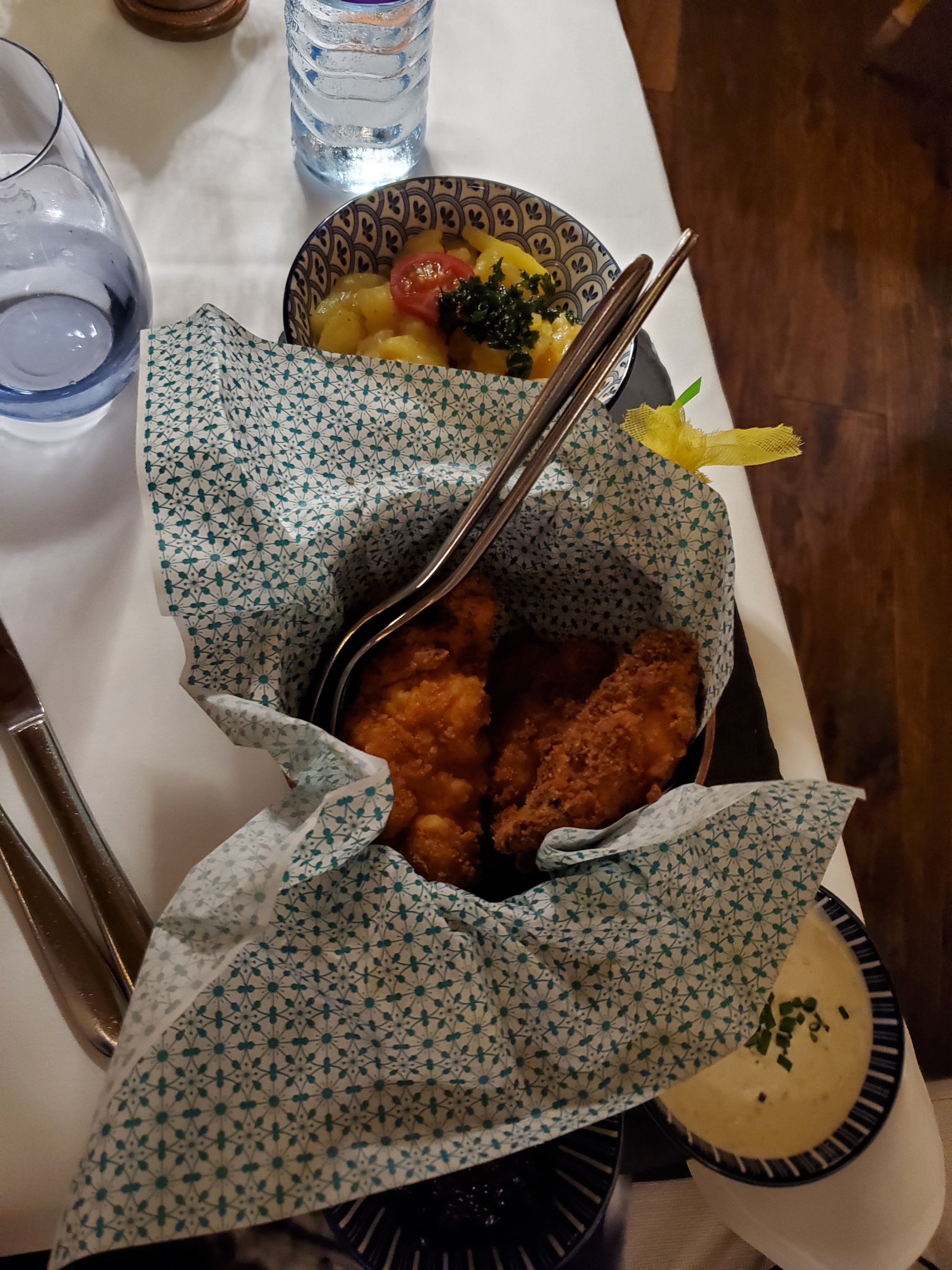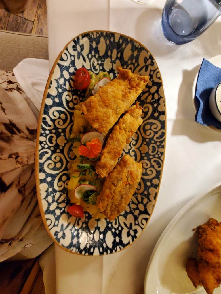 Back at our hotel, we rested a bit and then got ready for dinner downstairs at the restaurant. It was small and attractive and we had a great table. The food was good, the dessert was amazing.