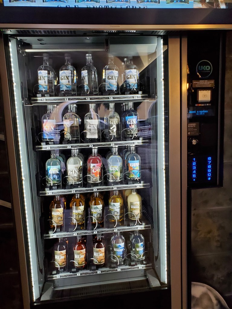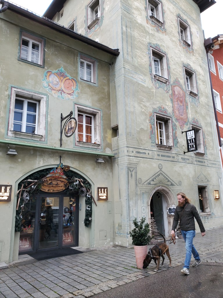 We came across something we’ve never seen before – a vending machine for alcohol. It’s called a ginomat and you a credit card to purchase bottles of gin, whiskey, vodka and some other selections. The See Distillery is located in the same building as the vending machine (see photo with the handsome guy walking his dog), a beautifully painted structure.