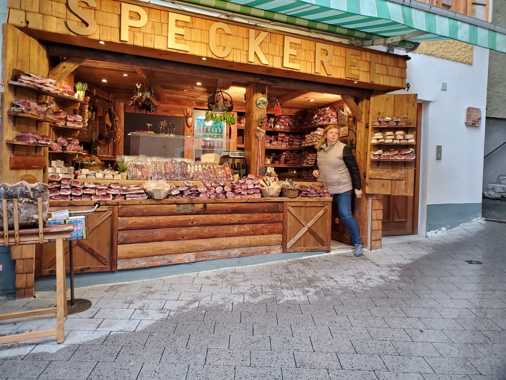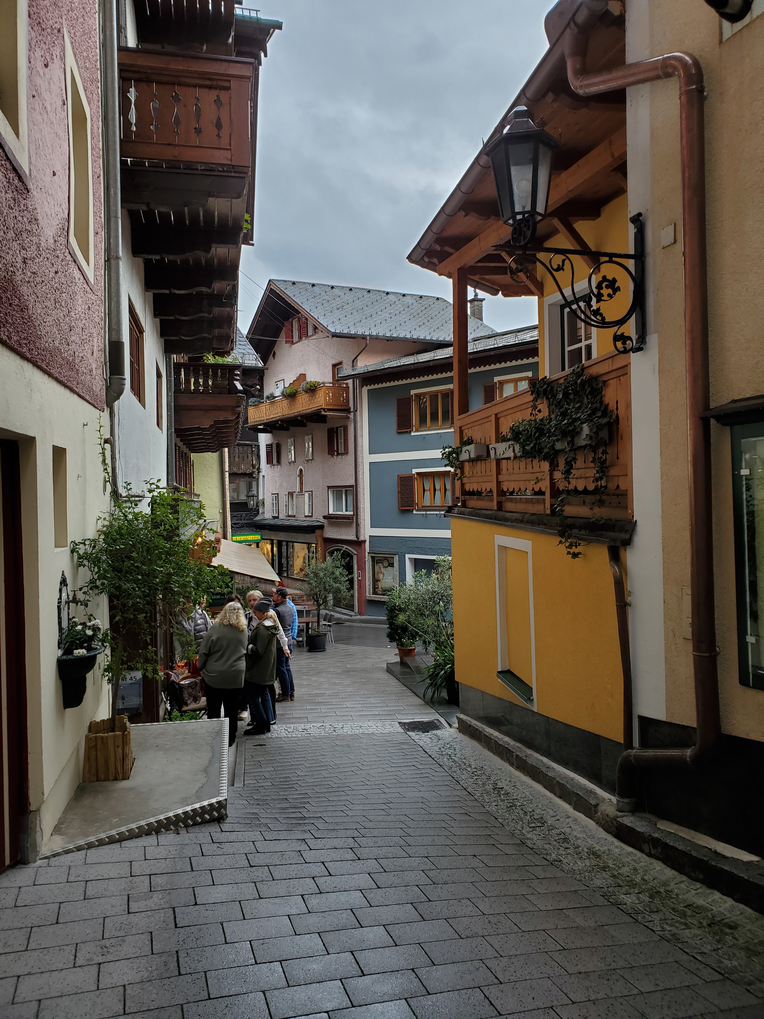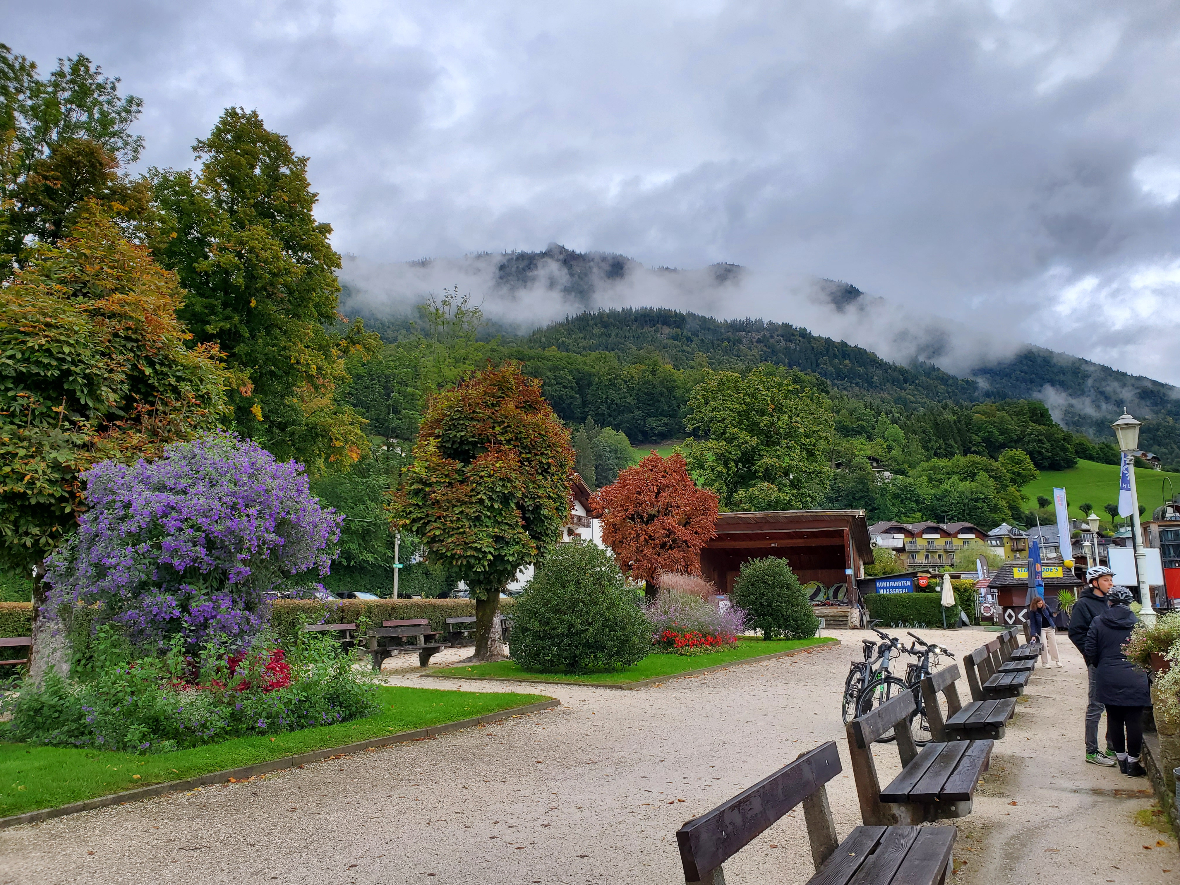 This town is beautiful. Clearly, it is no longer high season, but it’s easy to imagine thousands of tourists walking and shopping in this village. Everything is beautiful and pristine. The shops are inviting and everything is just so pretty. The lake is huge, the water is blue green and the mountains around it are stunning. Even on a dreary day like today, it looked beautiful.