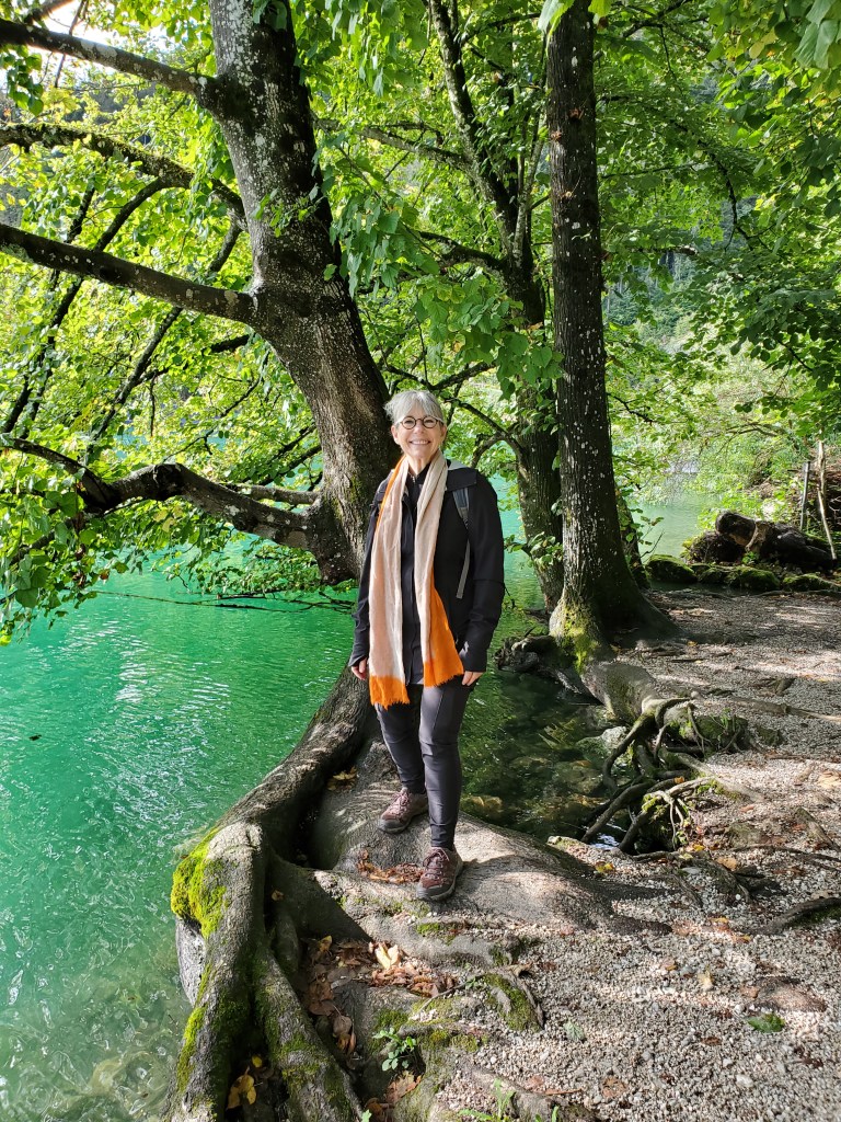 Time to descend toward the lake. In some ways, going downhill is harder than going uphill, especially when it is so steep. We used our walking sticks to keep us steady on the mostly gravel path.