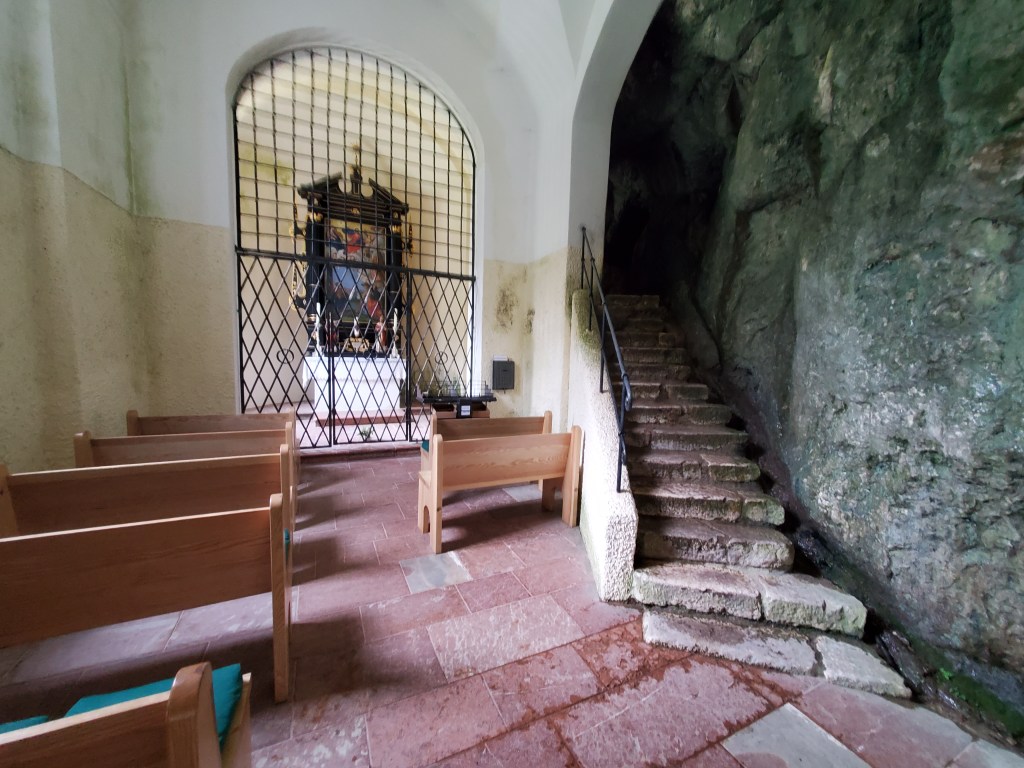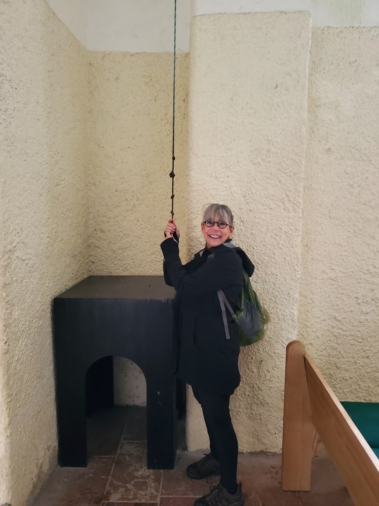 A highlight of this walk is reaching a church that’s built into the rock face. It’s such a sweet church just up on the hillside. Those who make a religious pilgrimage or those like us who cross the steep mountain are encouraged to go inside and ring the church bell. It felt like a celebration.