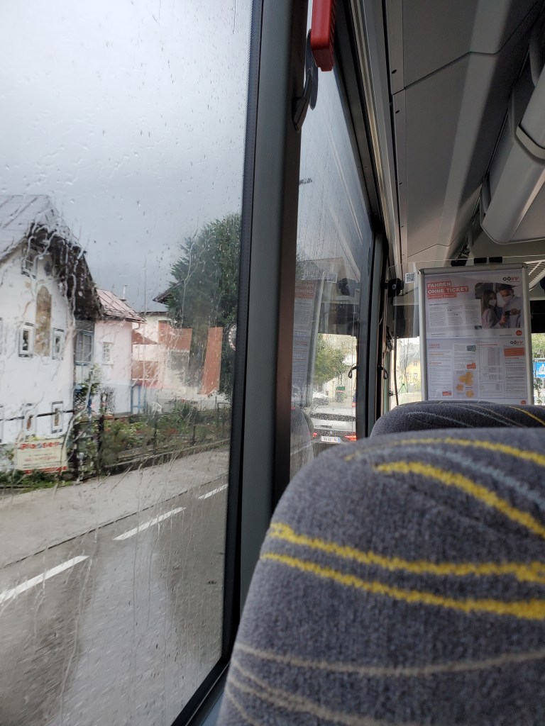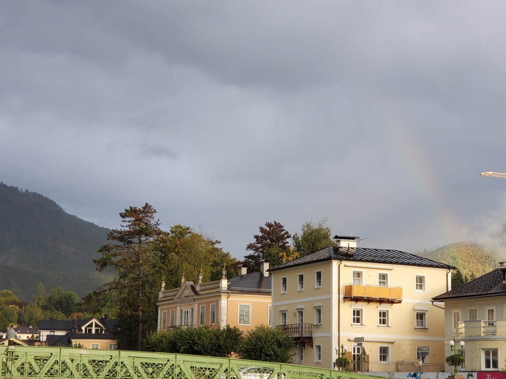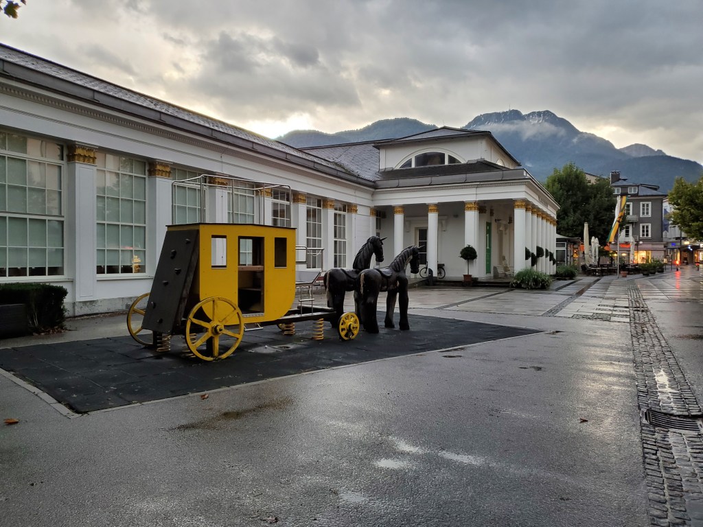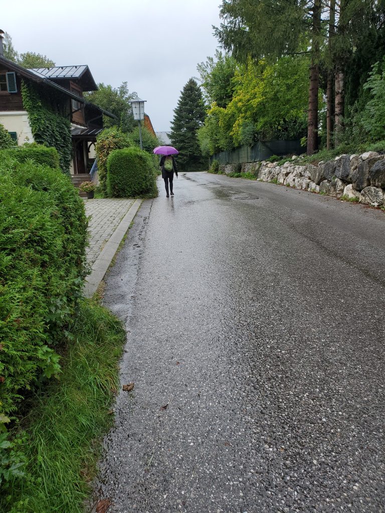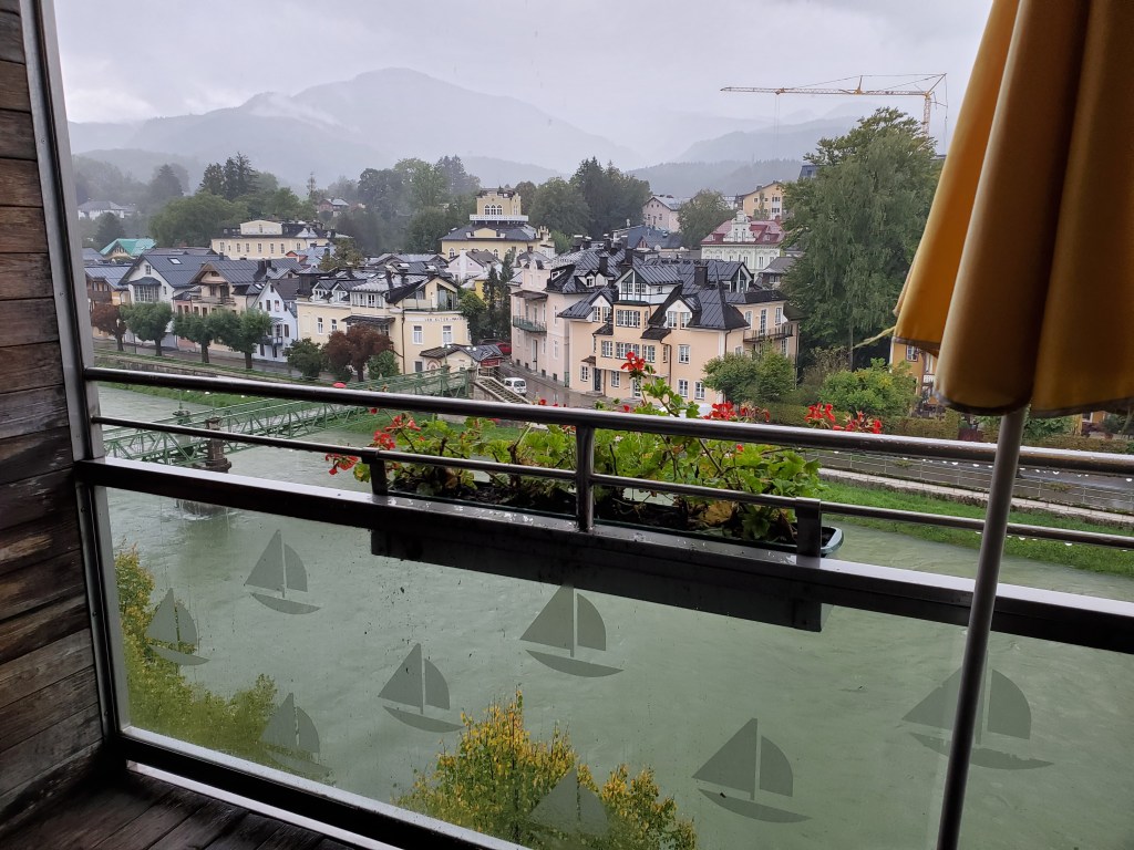 We just couldn’t make ourselves do it today. Physically, we welcomed the challenge, but the rain was heavier than ever with no end in sight. We just couldn’t face walking drenched for hours. Since tomorrow is supposed to be a rest day anyway, we decided to swap the schedule. It wasn’t an easy decision. We put off making it until around noon and then opted to catch the bus to our next destination for two nights, Bad Ischl. Instead of resting tomorrow, we’re going to bus back to St. Wolfgang and do the walk that was scheduled for today. There’s no rain predicted tomorrow.