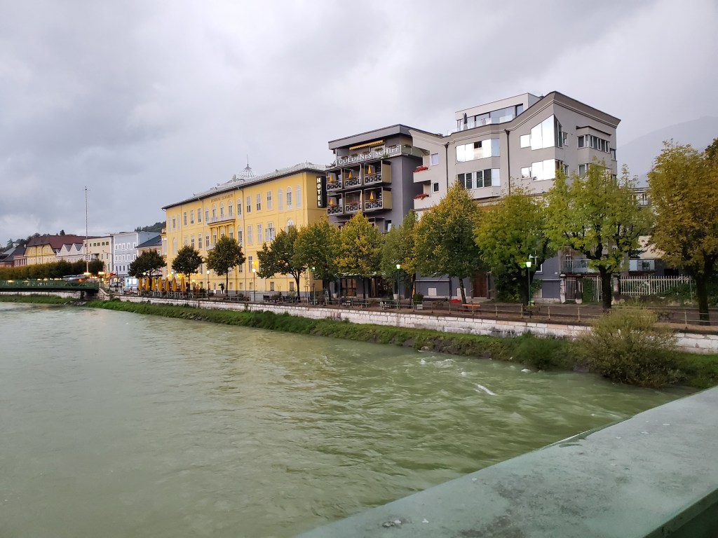 With rain pouring down, we stayed in the room most of the afternoon. This is another nice hotel with excellent customer service. We’ve been talking about how great all the service has been and how nice and helpful everyone is. We’ve met a lot of good people in our travels, but Munich and now these stops in Austria really stand out for great customer service and the kindnesses we’ve been shown.