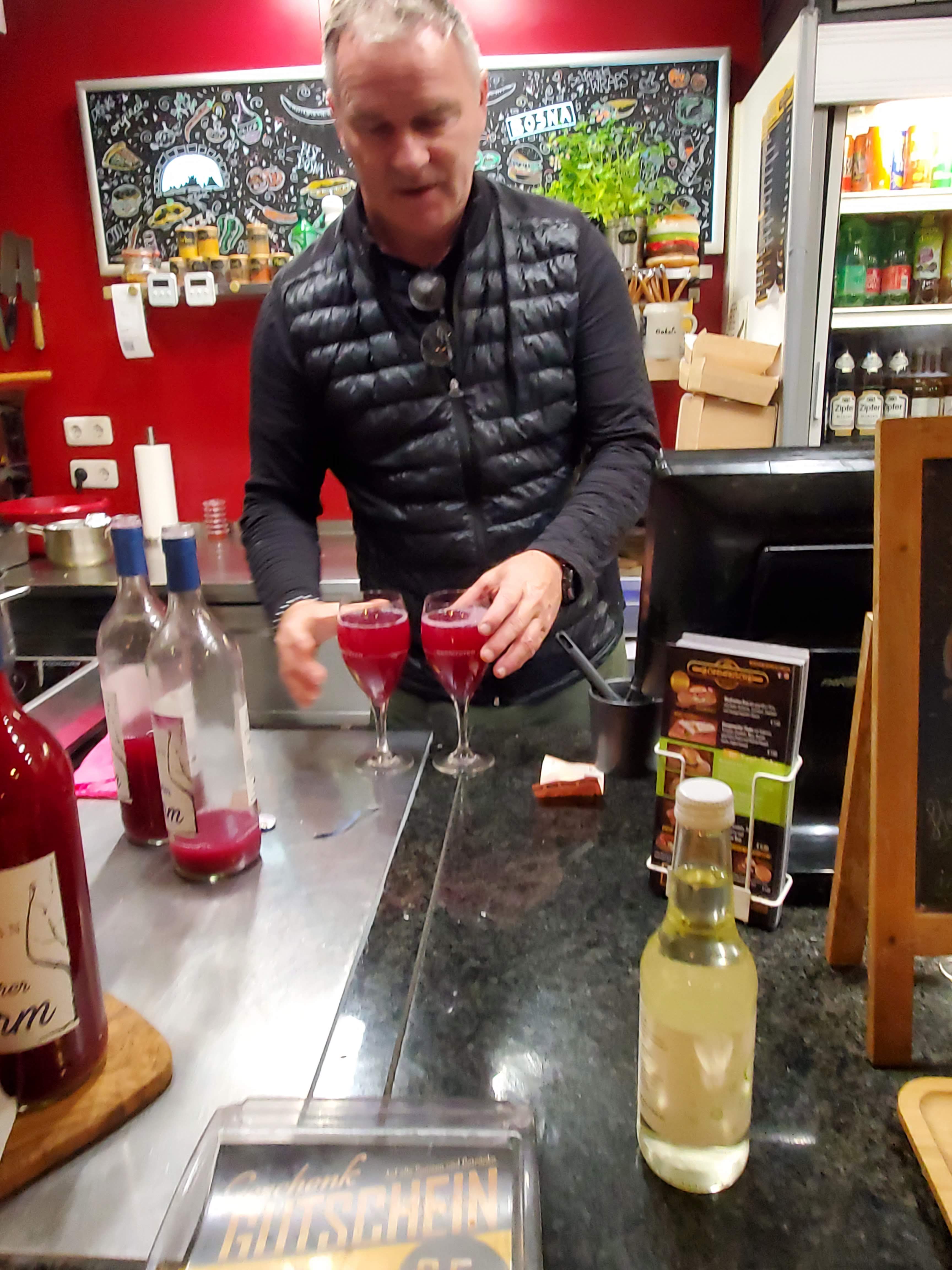 Two local men who are regular customers of the little stand were there drinking sturm and chatting with the owner and struck up a conversation with us. Rudiker and Schabbe (Rudy and Shabby) were great guys. We talked politics, life philosophy, family and experiences. There was a lot of laughter and even some singing.