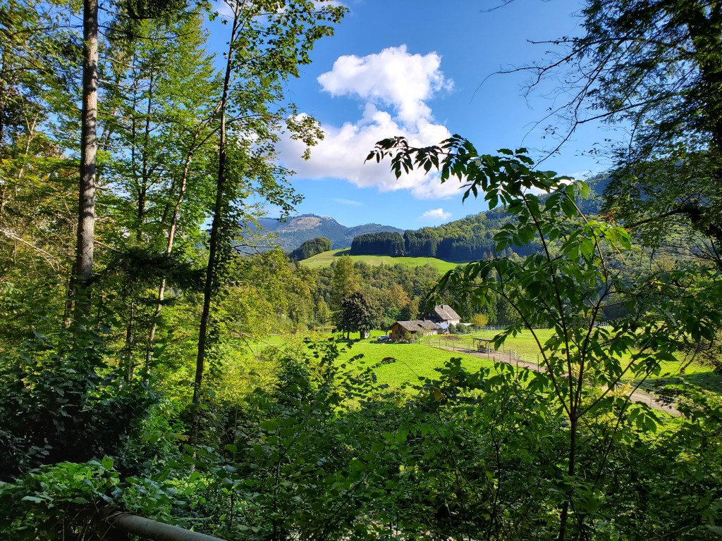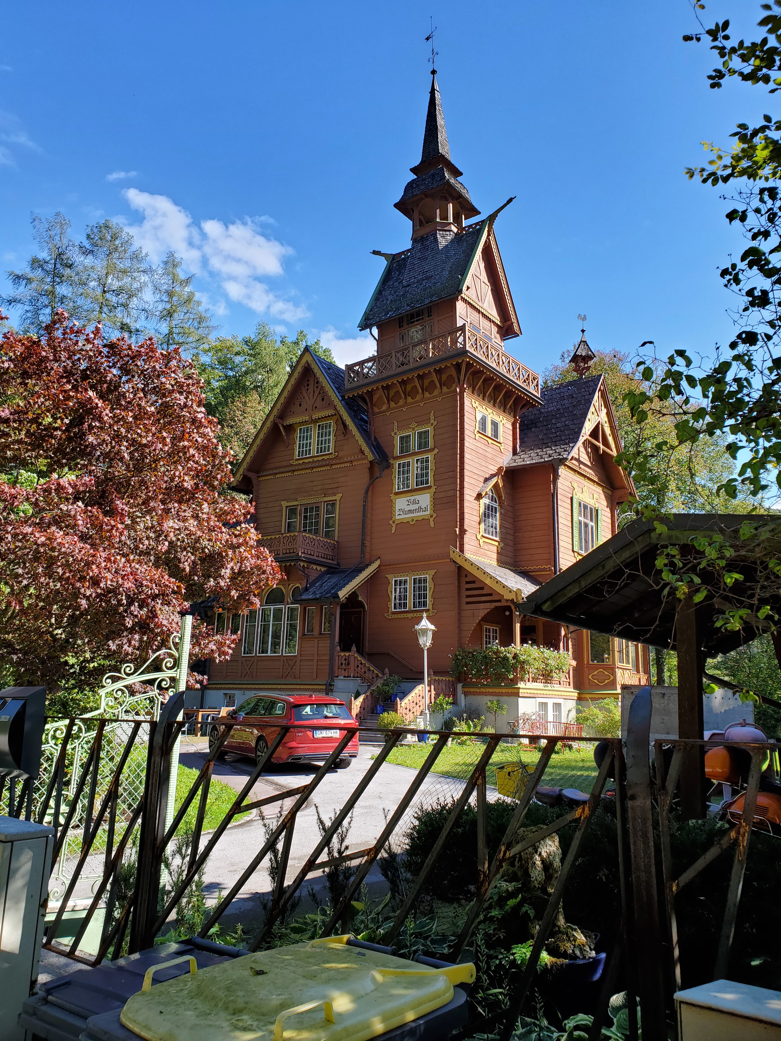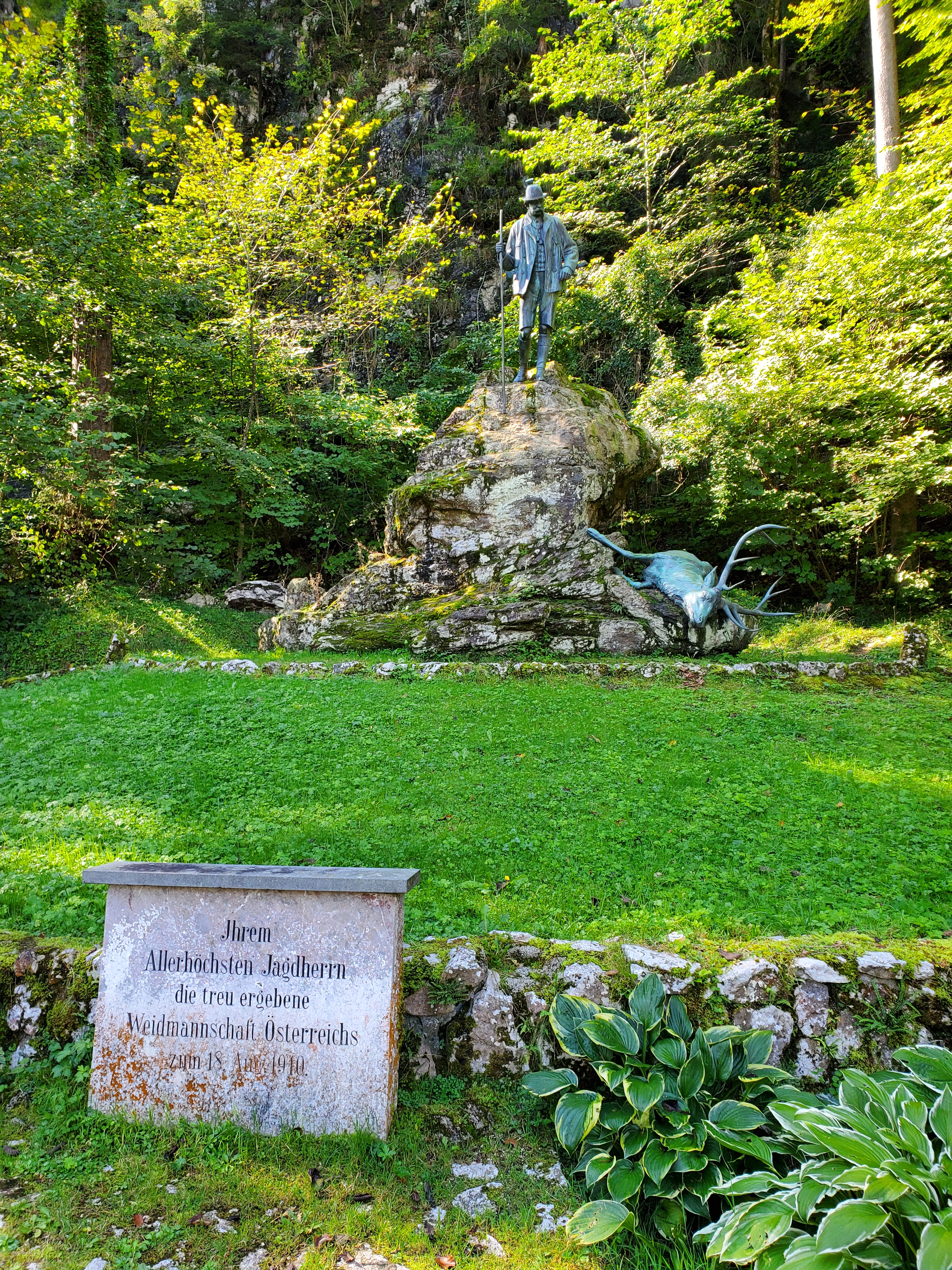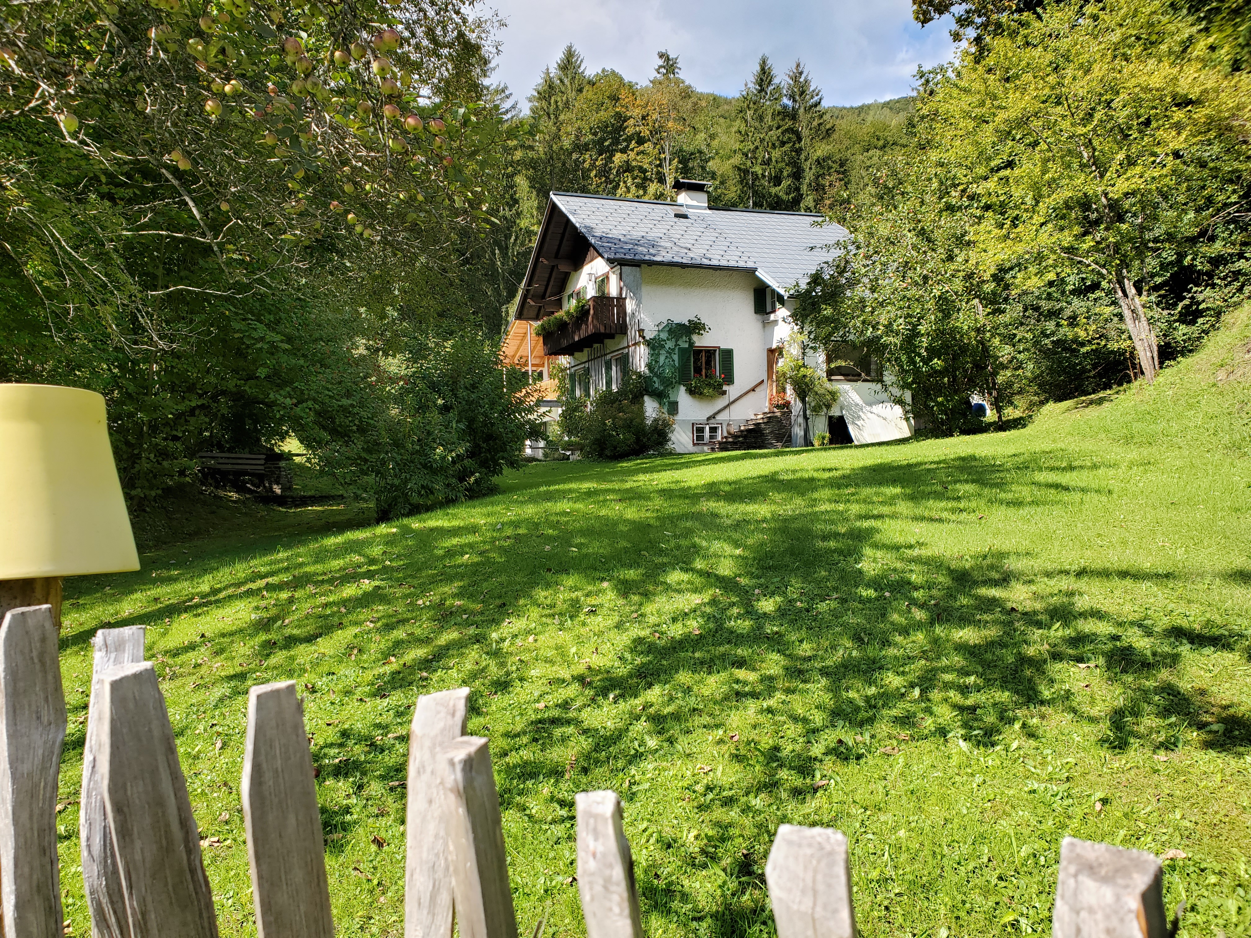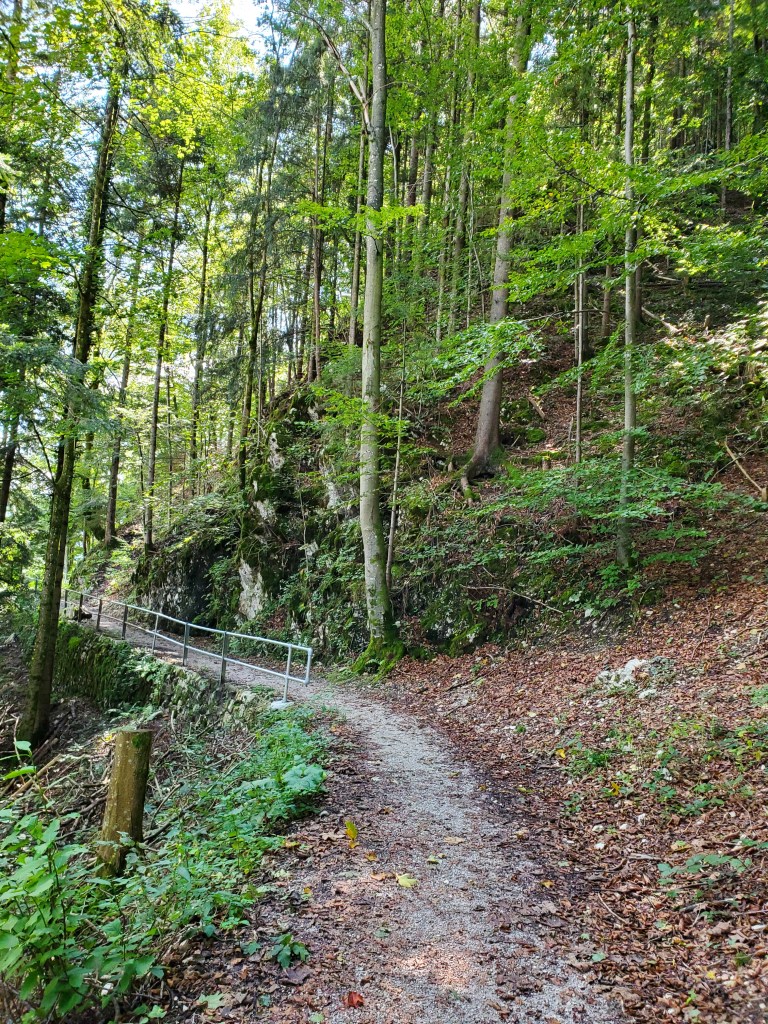 The sun shone on us all day today and it was magnificent. It was cold at first, low 40s, when we set out, but the day got warmer and warmer and so did we. We left Bad Ischl and walked along the river and by a children’s playground.