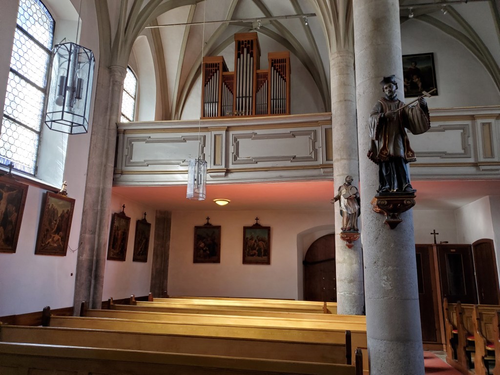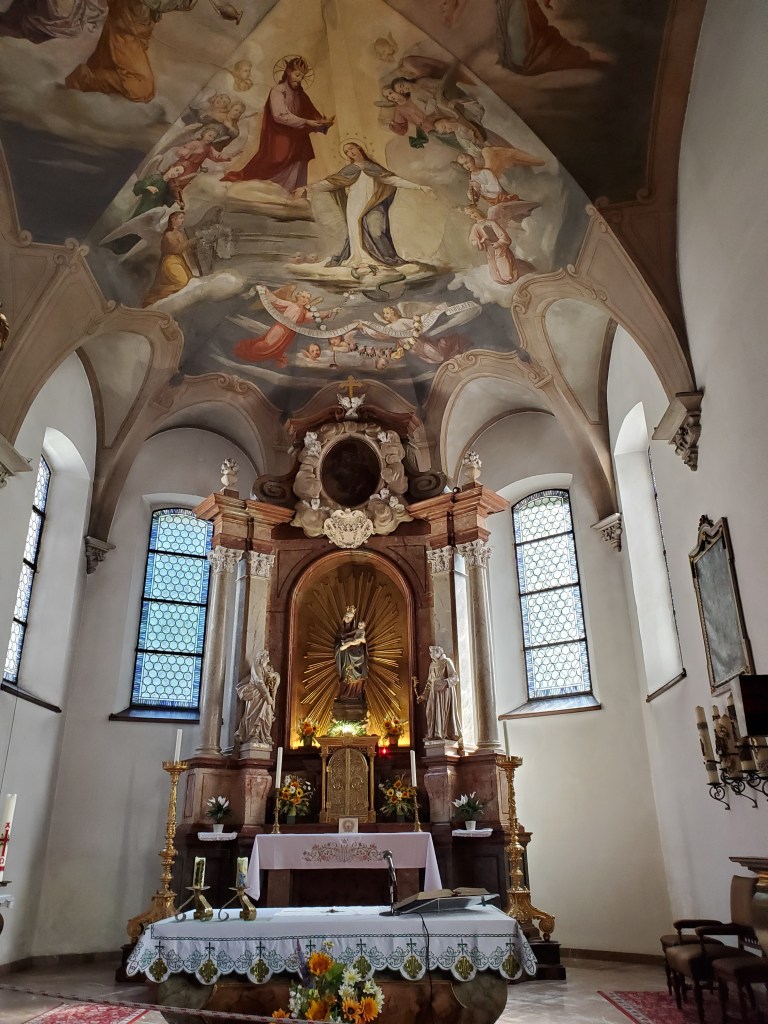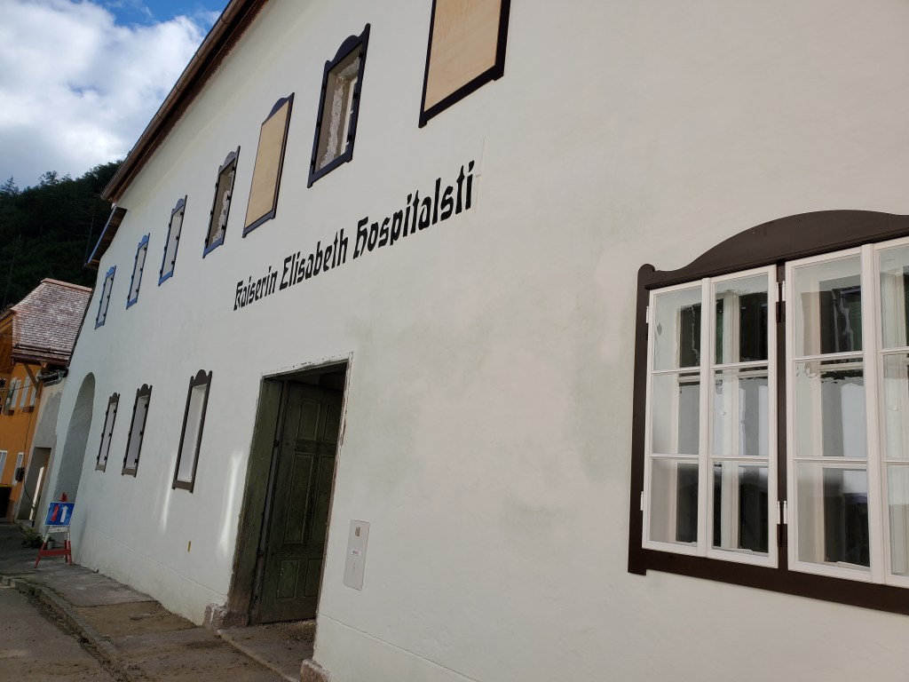 This hotel is not as great as the previous three (Munich, St. Wolfgang and Bad Ischl). It has its quirks – no elevator to help us move our luggage, a tiny shower, a hardish bed. But, it’s fine for a couple of nights.