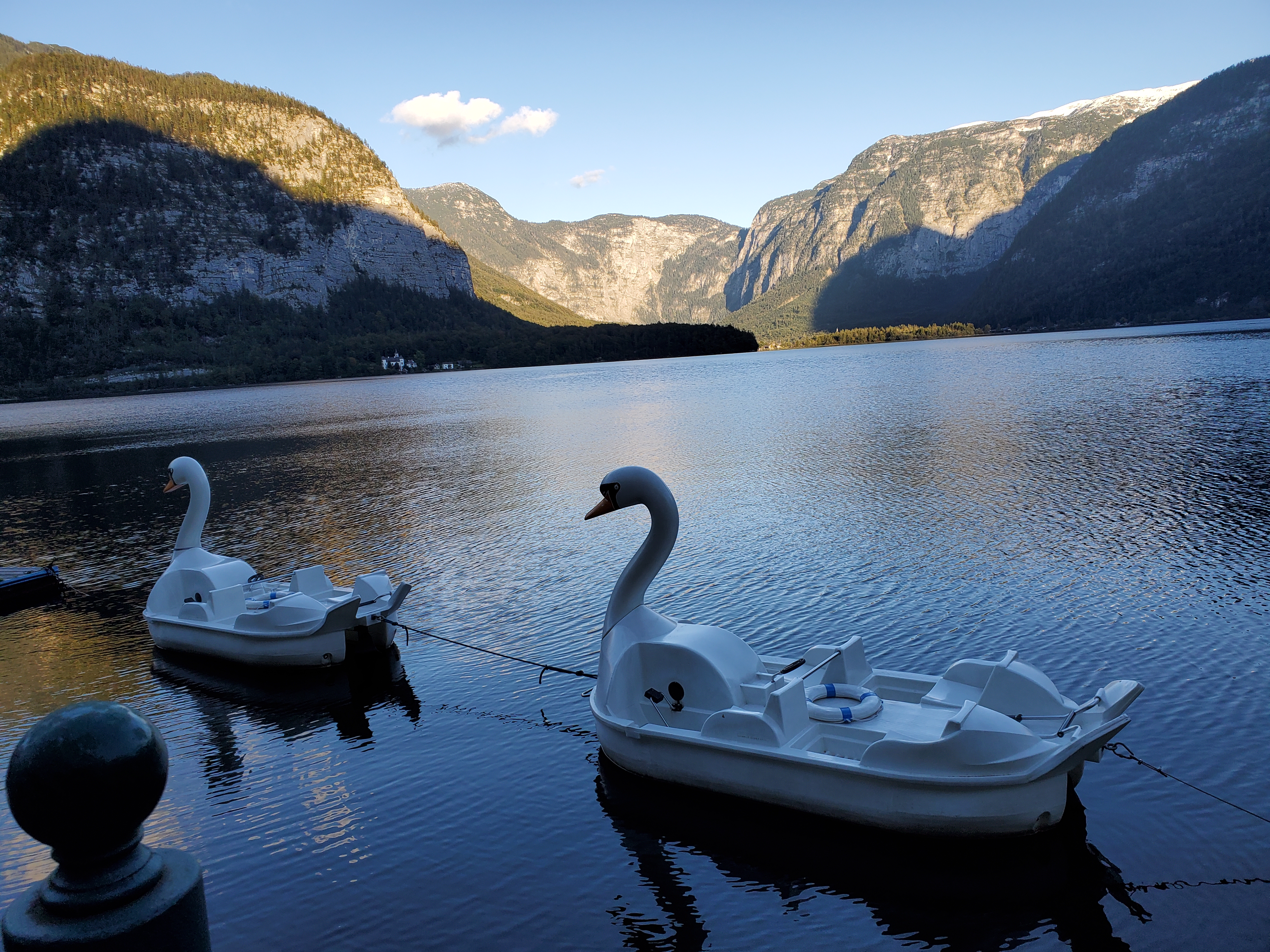 We had some difficulty finding the bus stop. We were supposed to train from Bad Goisen to Hallstatt, but the track is undergoing some work, so the train company is sponsoring a direct bus. We had tickets for that bus. However, we couldn’t find the bus stop for that service and ended up waiting for the regular bus just outside of town. Our tickets didn’t work for that and the free rides don’t extend to this region, so we paid about 10 euros, which we were happy to do. While at the bus stop, we met a young Canadian, Mitch. He is traveling Europe for two months and has already been in Italy, France, Spain, Switzerland and other places. After Austria, he is making his way to Amsterdam.