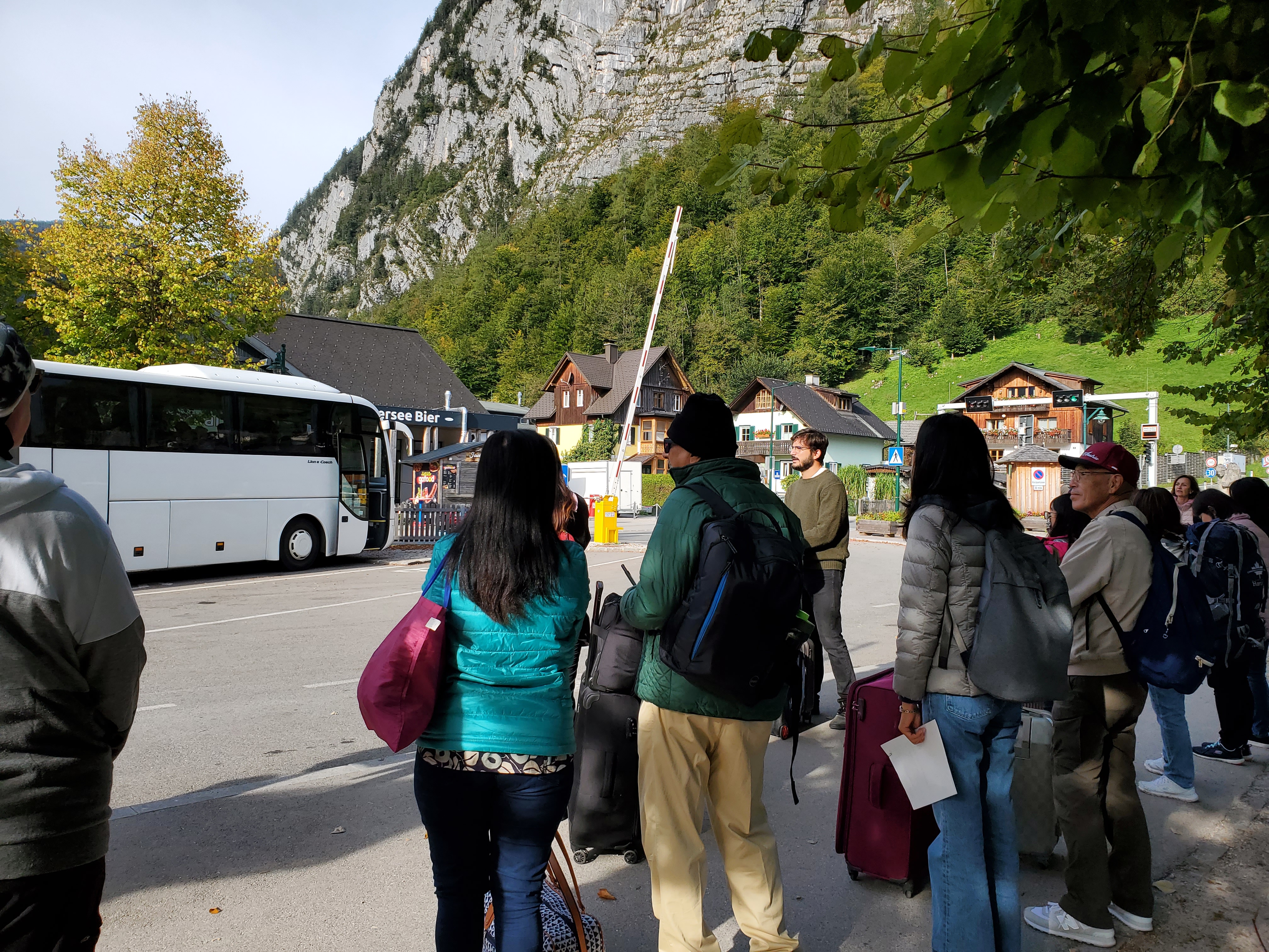 The bus was supposed to arrive around 9:30, then 10, then 10:30. A crowd waiting on the bus was gathered staring at that tunnel in the mountain – the only way in and out of Hallstatt. The whole crowd got excited when we saw one emerge, but it was the wrong one.