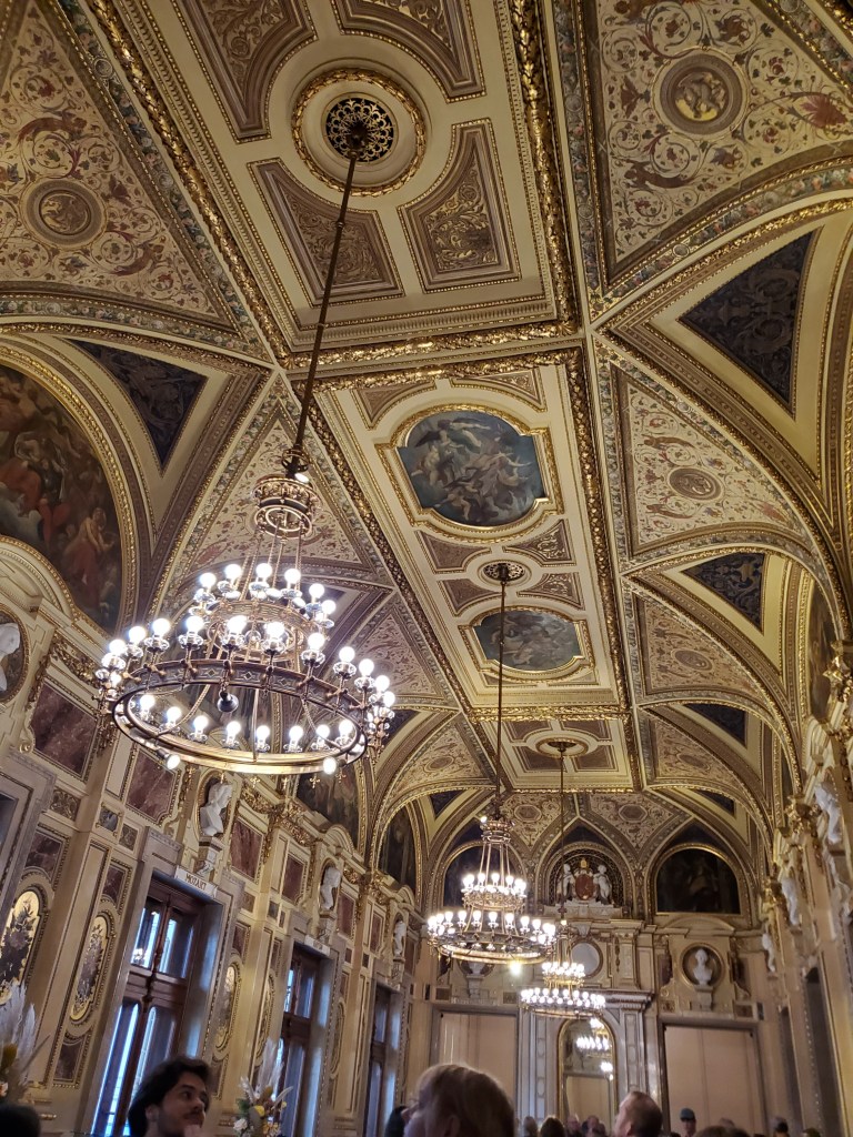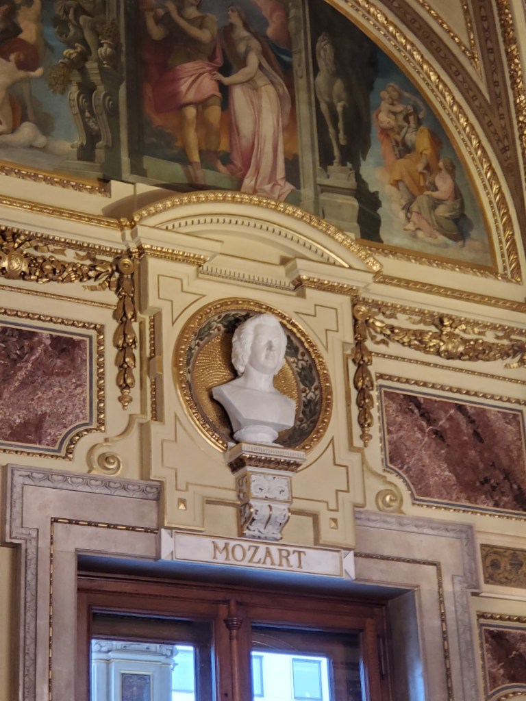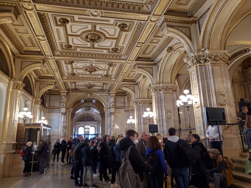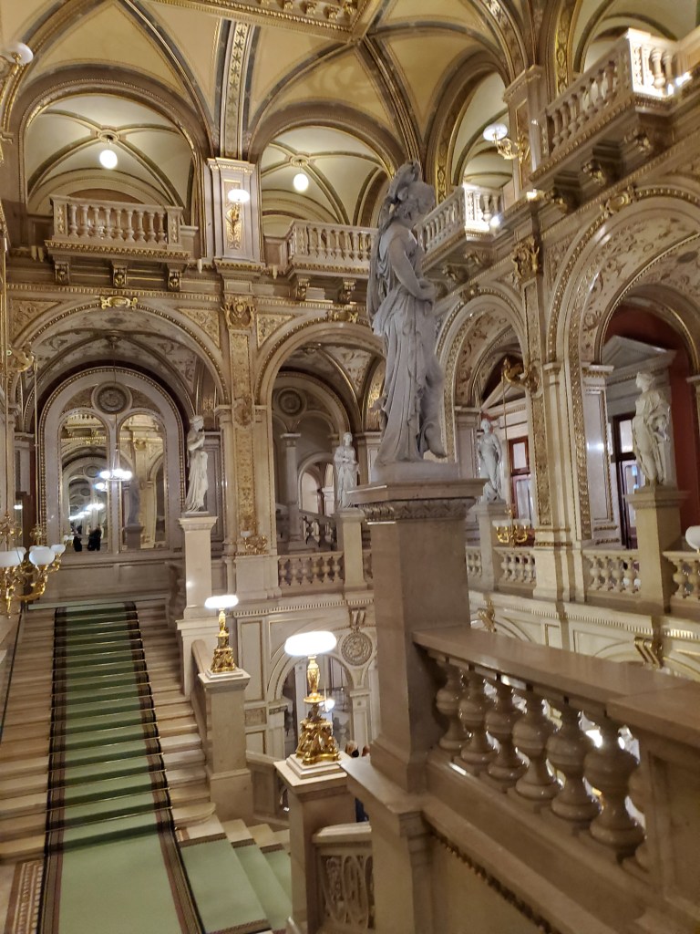 Next on our agenda was a tour of the Vienna State Opera House. It was a fantastic tour with a knowledgeable guide. The Opera House is beautiful and its history is interesting. All the great names of composing and singing have appeared and performed on stage there. An accidental allied bombing destroyed two-thirds of the building during World War II and it had to be rebuilt. They kept the main gallery much the same with the shape and the boxes, but unfortunately they decorated in the 1950s style of the time.