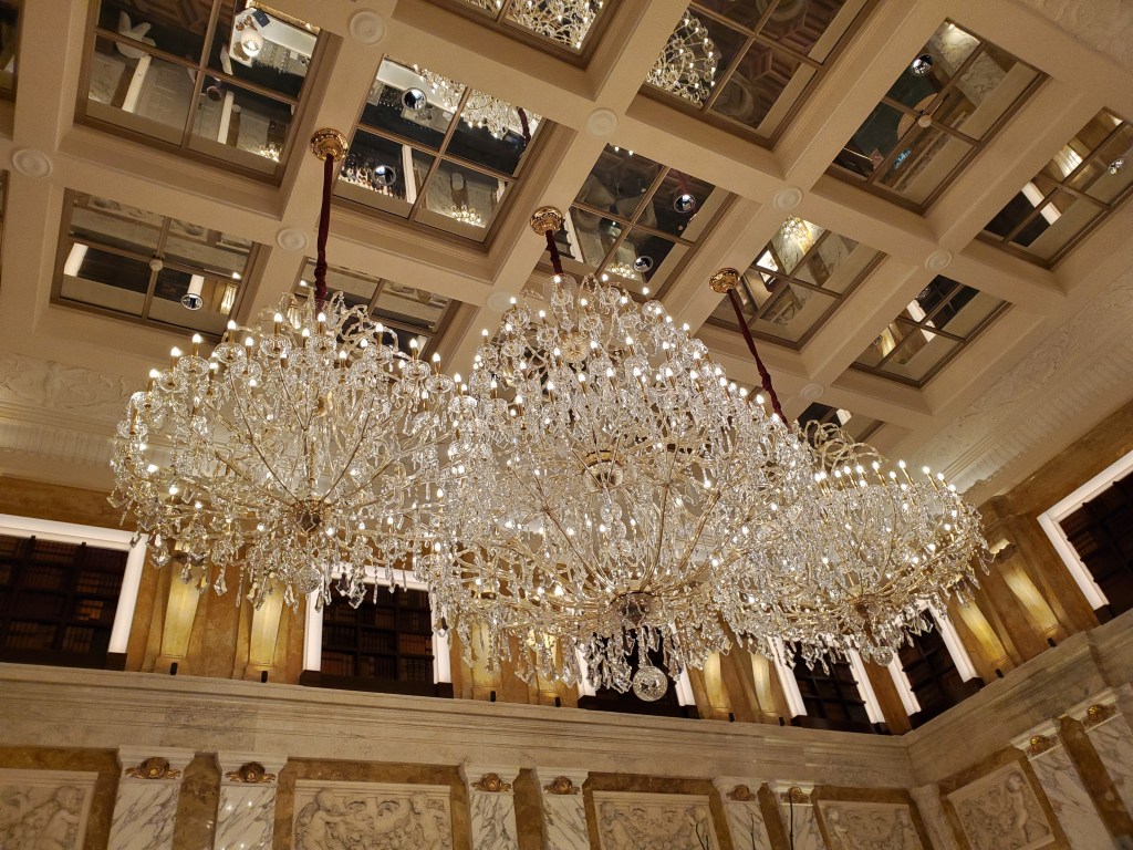 We left the Opera House and walked to the Imperial Hotel, the premier hotel in Vienna. It’s where the famous stay when they visit, from the late Queen Elizabeth to the Rolling Stones. It’s easy to see why, the hotel is beautiful and elegant. We had a drink in the swanky bar in comfortable chairs beneath a light fixture of more than 7500 crystals.