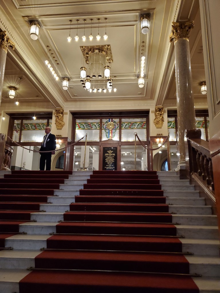Next stop took us back to Wenceslas Square, this time by tram, where we went to a steakhouse located in the lower floor of the former Communist Parliament building, now the National Museum.