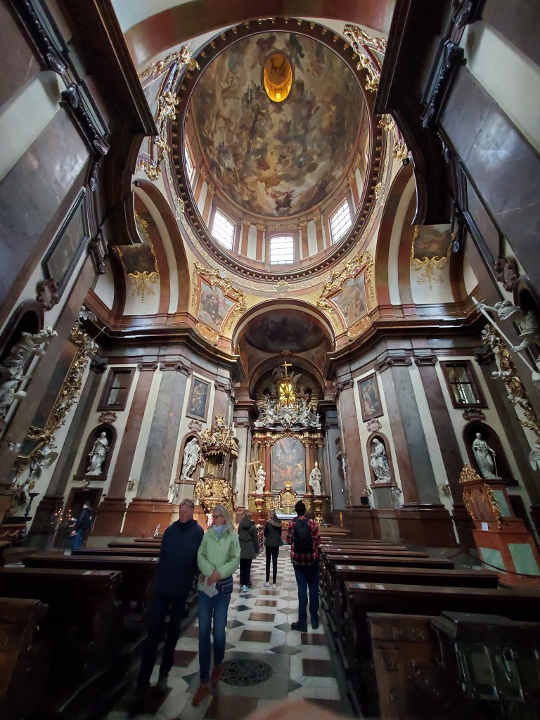 By 10 a.m., we were out walking and listening to an audio tour describing the sites, history and architecture of Old Town and New Town. The tour began at the statue of Good King Wenceslas (actually Saint Wenceslas) in the square that carries his name. It’s not really a square, but instead a long boulevard with a pedestrian walkway in the center. It is an important space for Prague and for the Czech people, as it is where freedom was claimed, lost and claimed again. The square hosted the celebration in 1918 of the creation of the Czechoslovak state. Soviet tanks rolled through the square in 1968 to suppress a Czech uprising, and then, in 1989, more than 300,000 Czechs filled the boulevard every night for two weeks to demand freedom during the Velvet Revolution. They jingled their key chains as a symbolic sign for the Communists to leave the city. It was then that the Communist government resigned and democracy won.