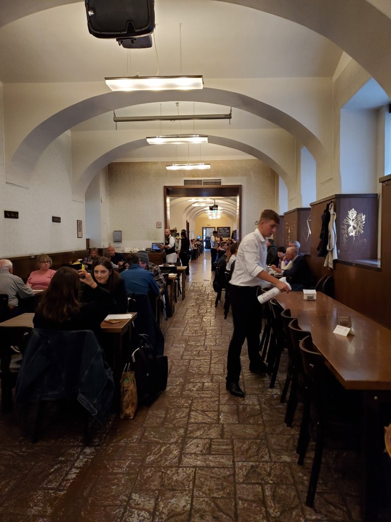 The first stop was a very traditional Czech pub, which is rare to find in Old Town. Lokal is a busy place serving traditional Czech pub food and lots of beer. The Czechs drink more beer than any other country and they are proud of it. They also drink better beer. The beer in this pub is unpasteurized, which typically means it must be consumed within about 45 days. That’s not an issue in this pub, where the tanks are refilled every 7 days, meaning the beer is extremely fresh. The taste difference is amazing. As an example, Betsy does not like beer and never drinks it no matter how often I beg her to take a taste. But drinking a beer at this pub is part of the Prague experience, so we both ordered a small mug. Betsy was surprised at how good it was.