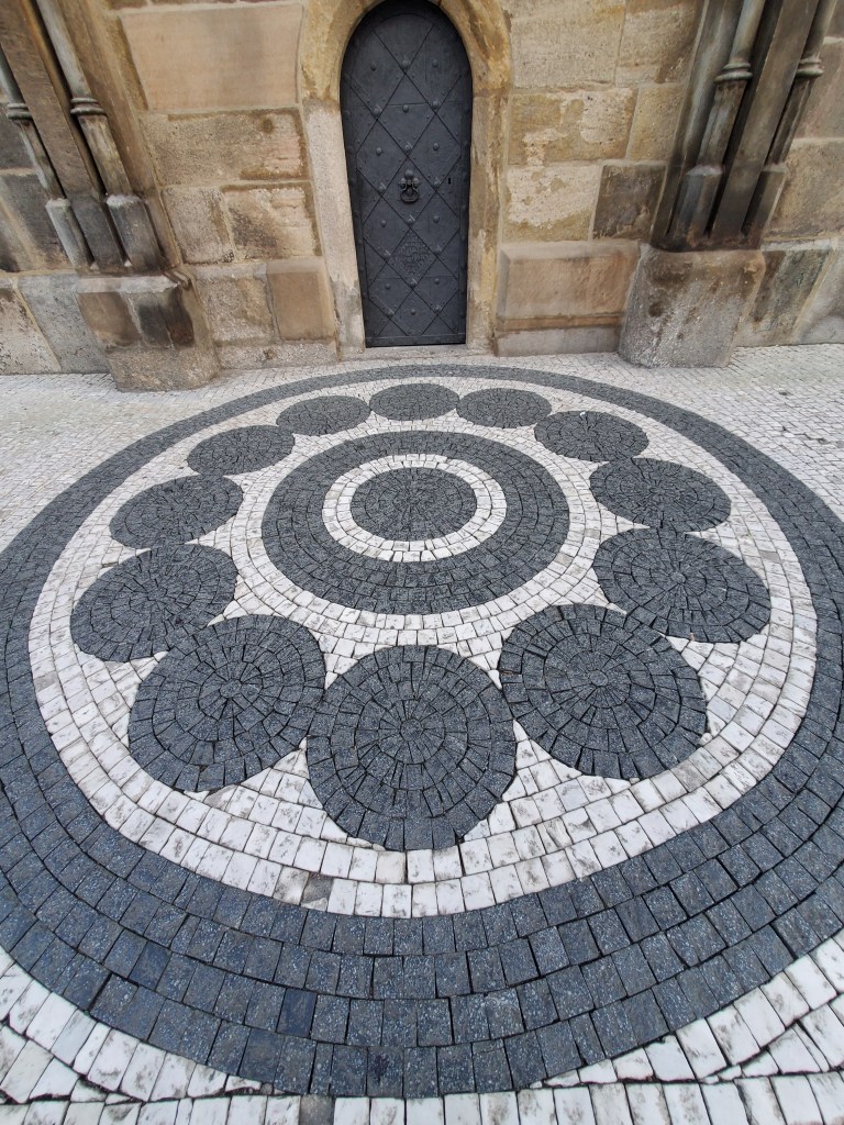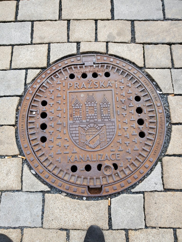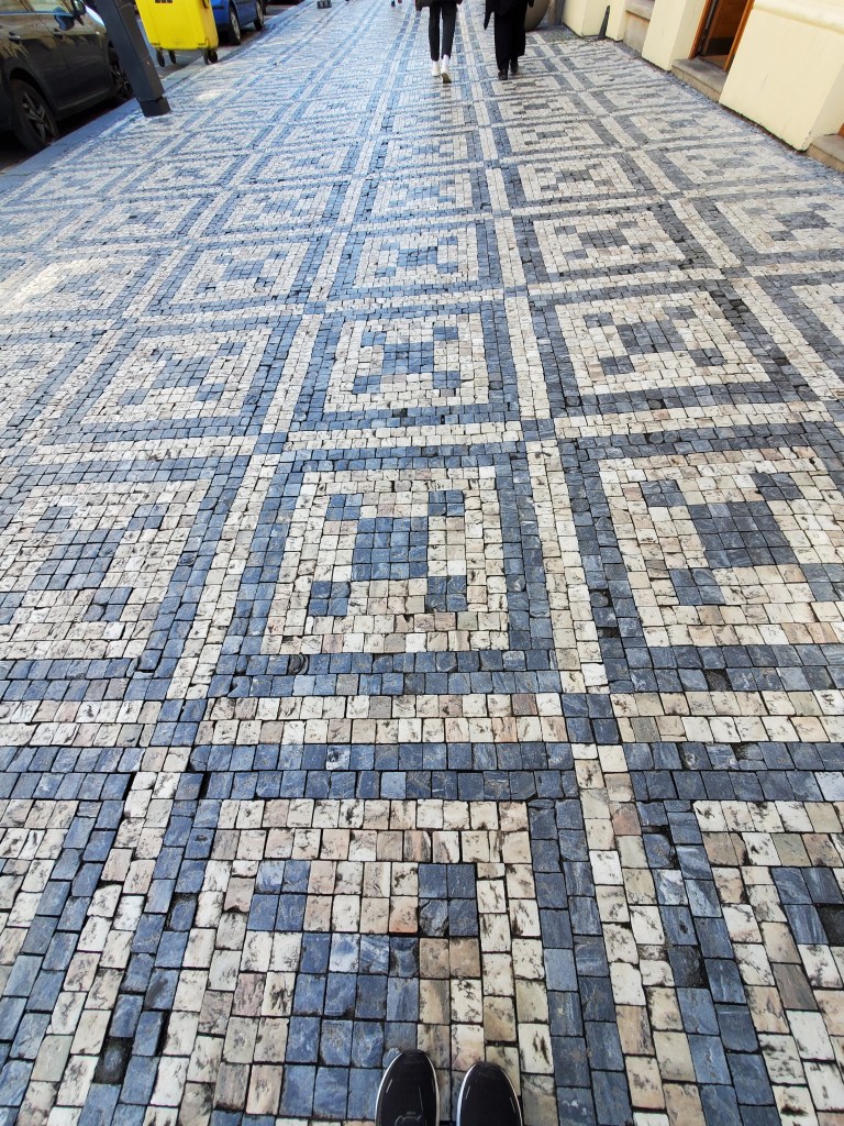 We are always amazed at the tile designs in European cities, but Prague has such an abundance of cobblestone streets and sidewalks — more than in any city we’ve seen, with the possible exception of Lisbon. Think about the amount of work that has been put into this over the centuries — hand-cut stone, carefully considered design and the actual installation of what has to be millions of stones in this City of Spires. Repairs are still made by hand, with chisels and hammers.