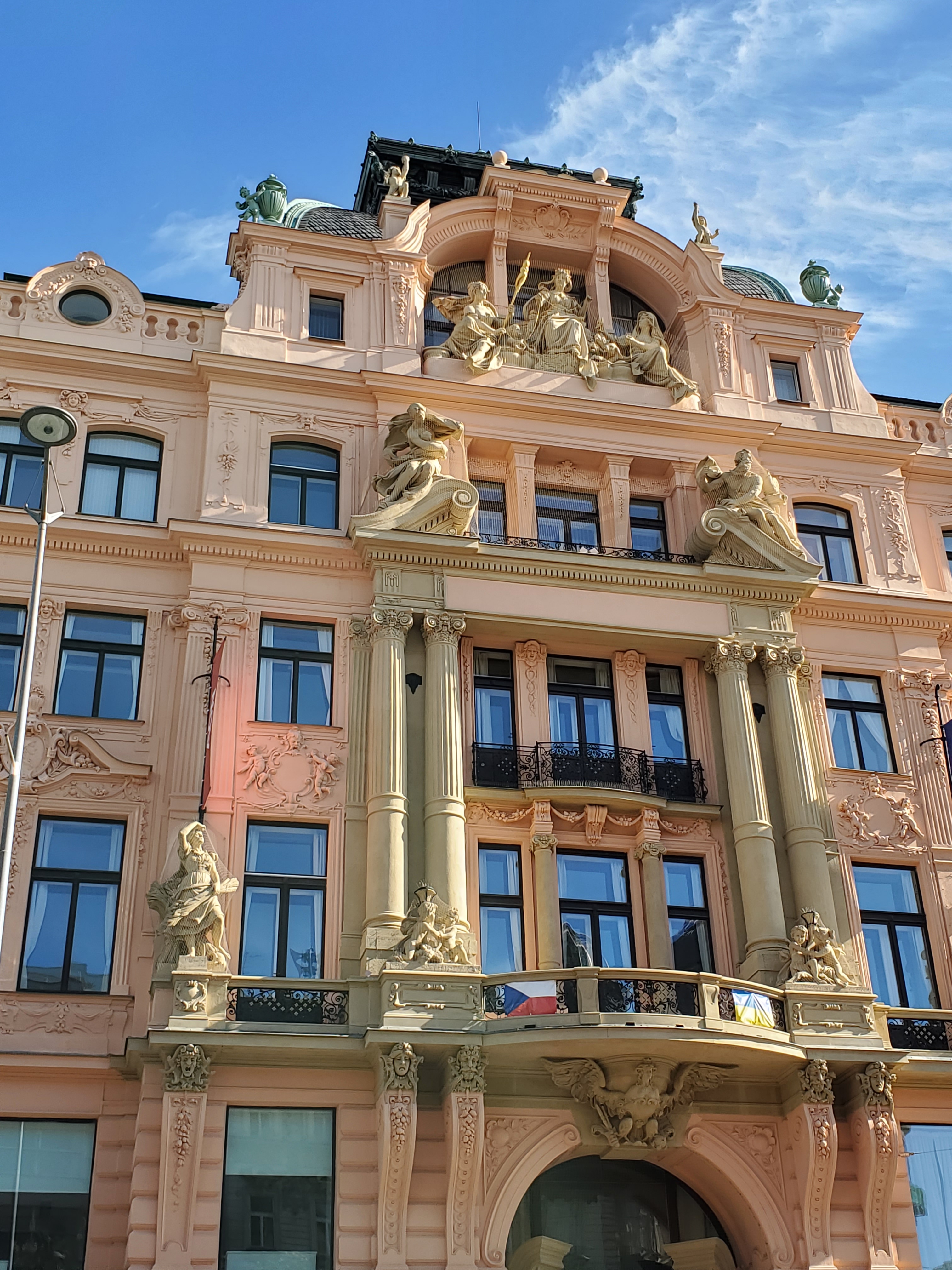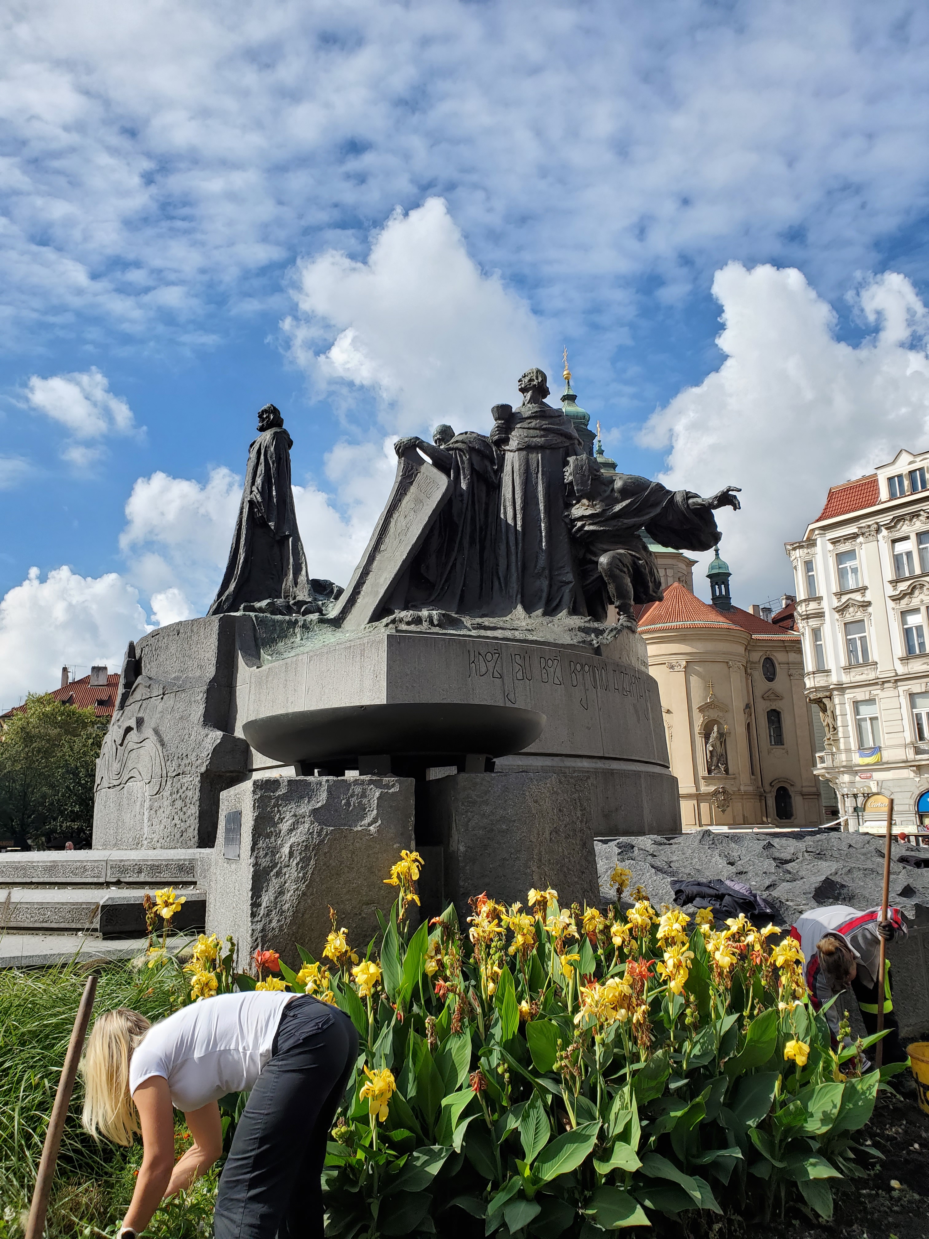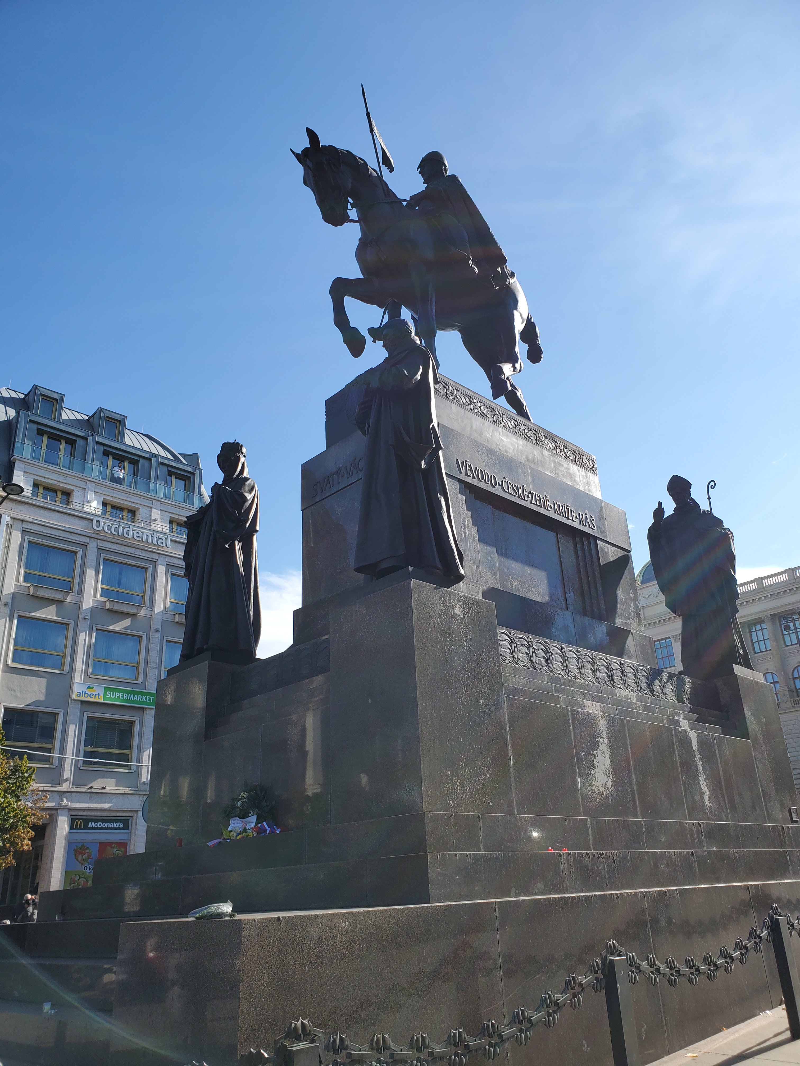 By 10 a.m., we were out walking and listening to an audio tour describing the sites, history and architecture of Old Town and New Town. The tour began at the statue of Good King Wenceslas (actually Saint Wenceslas) in the square that carries his name. It’s not really a square, but instead a long boulevard with a pedestrian walkway in the center. It is an important space for Prague and for the Czech people, as it is where freedom was claimed, lost and claimed again. The square hosted the celebration in 1918 of the creation of the Czechoslovak state. Soviet tanks rolled through the square in 1968 to suppress a Czech uprising, and then, in 1989, more than 300,000 Czechs filled the boulevard every night for two weeks to demand freedom during the Velvet Revolution. They jingled their key chains as a symbolic sign for the Communists to leave the city. It was then that the Communist government resigned and democracy won.