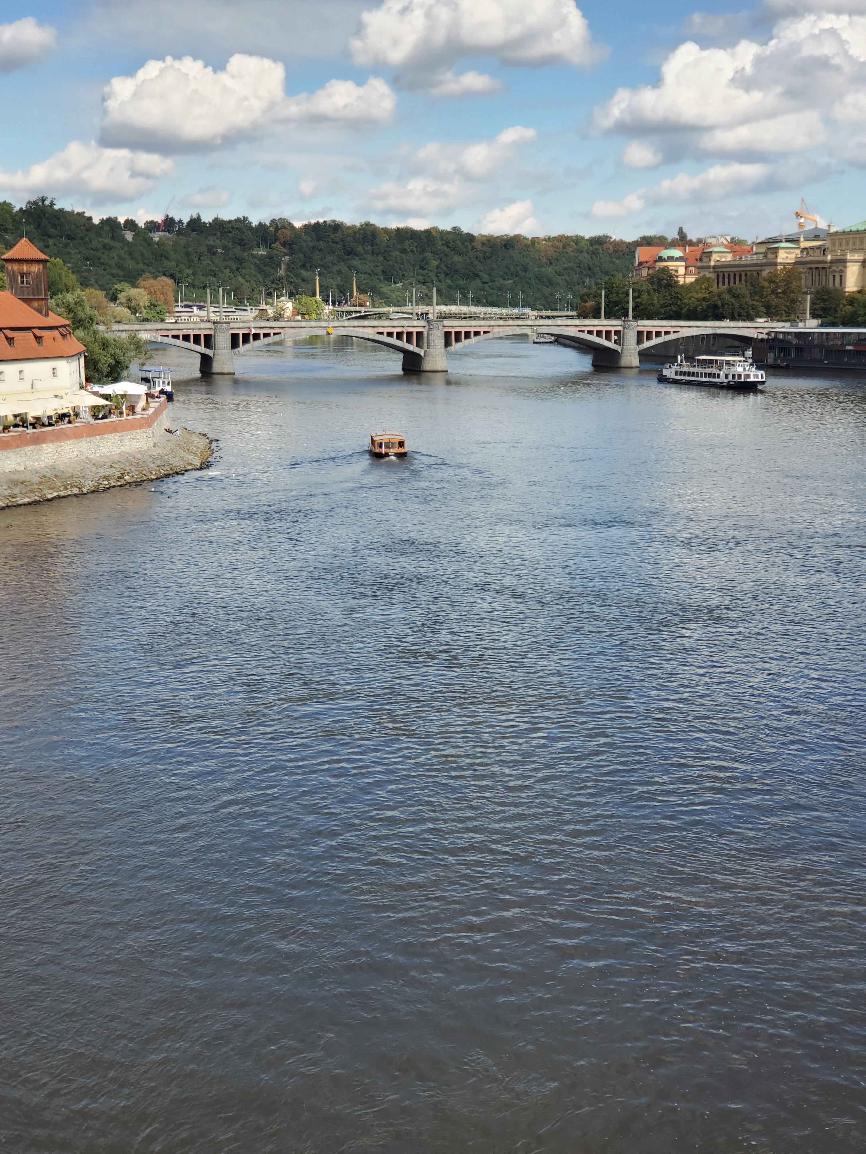 We walked the same route we did at dawn to get to the Charles Bridge, but this time it was much busier with people and open shops. The bridge was also filled with people.