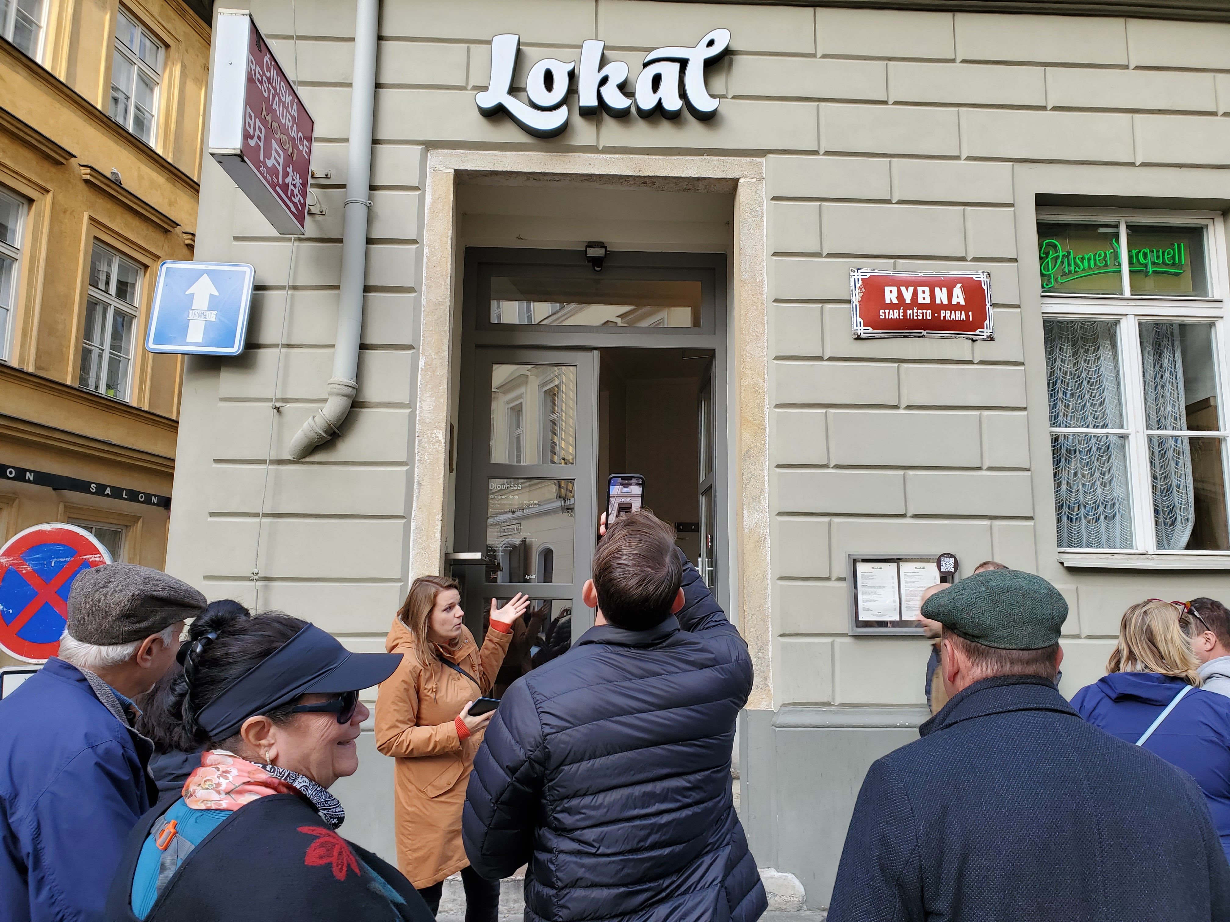 The first stop was a very traditional Czech pub, which is rare to find in Old Town. Lokal is a busy place serving traditional Czech pub food and lots of beer. The Czechs drink more beer than any other country and they are proud of it. They also drink better beer. The beer in this pub is unpasteurized, which typically means it must be consumed within about 45 days. That’s not an issue in this pub, where the tanks are refilled every 7 days, meaning the beer is extremely fresh. The taste difference is amazing. As an example, Betsy does not like beer and never drinks it no matter how often I beg her to take a taste. But drinking a beer at this pub is part of the Prague experience, so we both ordered a small mug. Betsy was surprised at how good it was.
