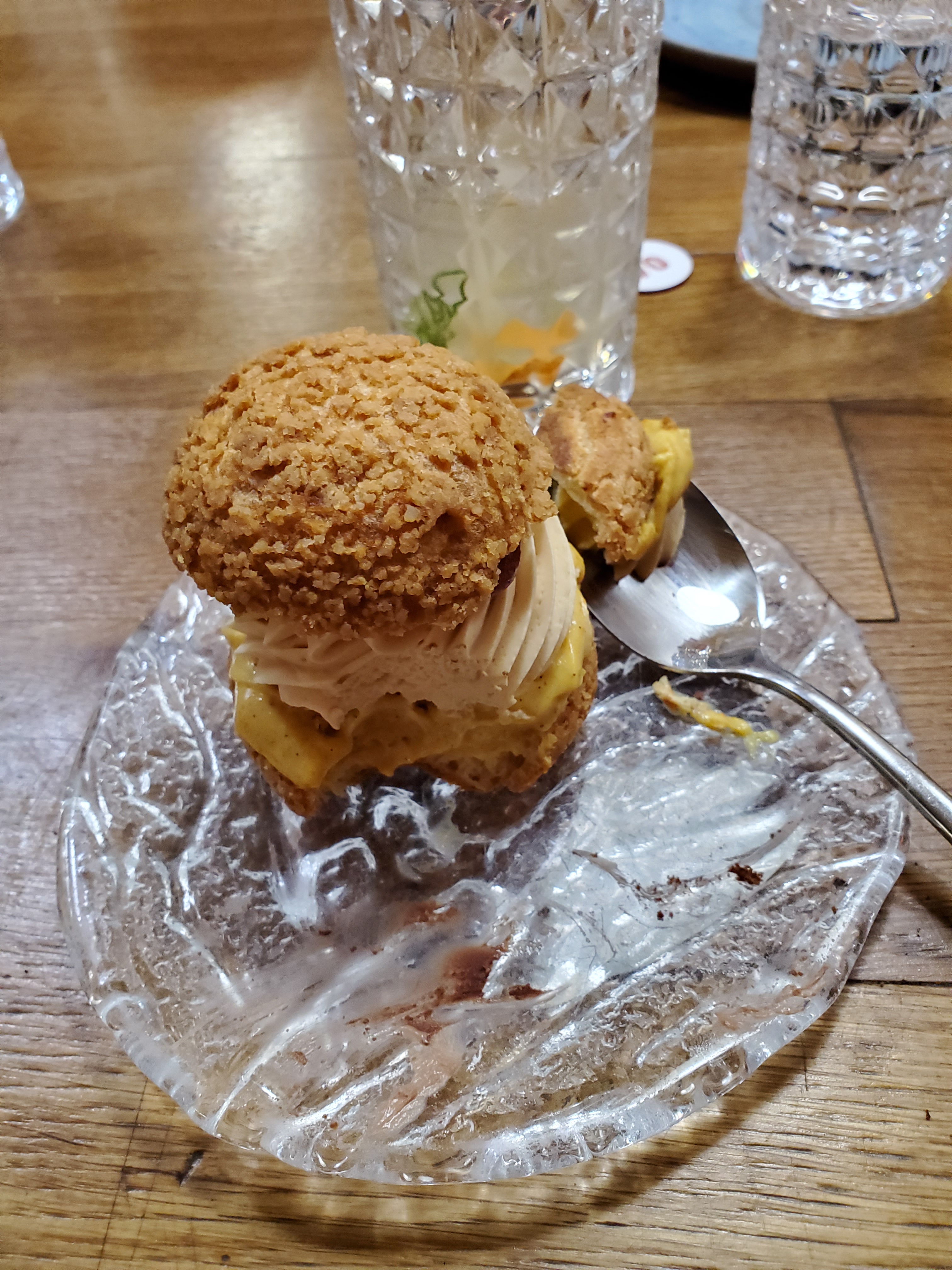 Back on a tram, we arrived at our last stop, Ezka, a gorgeous open-kitchen restaurant and bakery located in a former industrial space where boilers were produced. We tried their famed burnt potato dish surrounded by a creamy potato sauce and topped with dehydrated grated egg yolk and bit of smoked carp – yes, carp. It did not taste fishy, but just added some smoky umami to the dish. It was excellent.