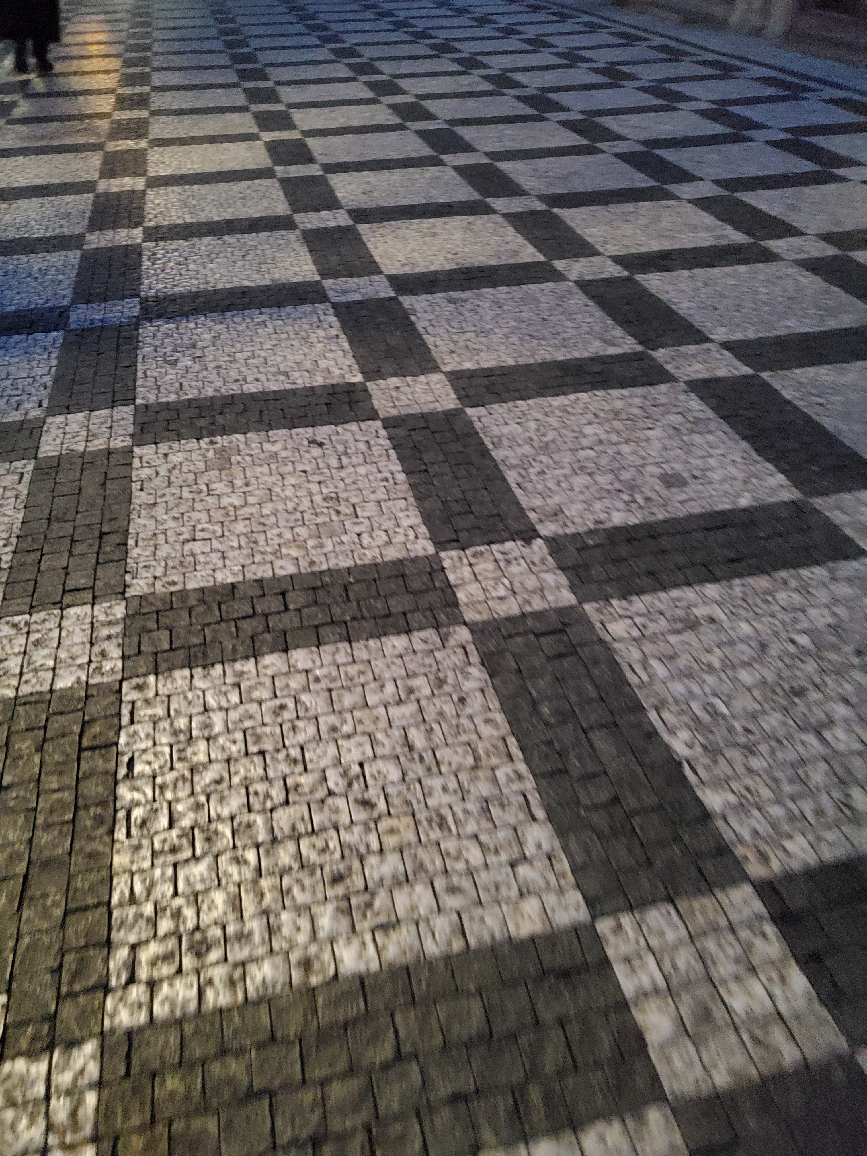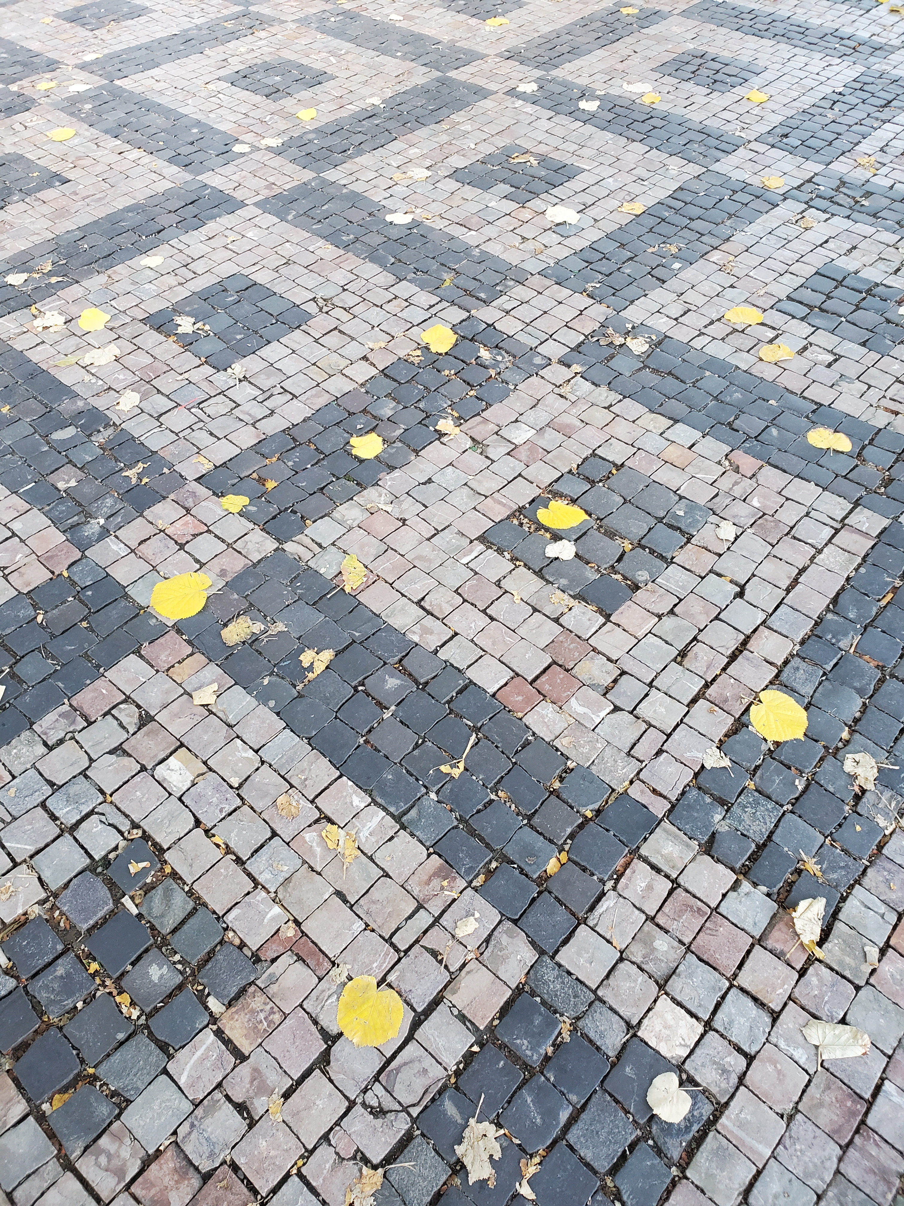 We are always amazed at the tile designs in European cities, but Prague has such an abundance of cobblestone streets and sidewalks — more than in any city we’ve seen, with the possible exception of Lisbon. Think about the amount of work that has been put into this over the centuries — hand-cut stone, carefully considered design and the actual installation of what has to be millions of stones in this City of Spires. Repairs are still made by hand, with chisels and hammers.
