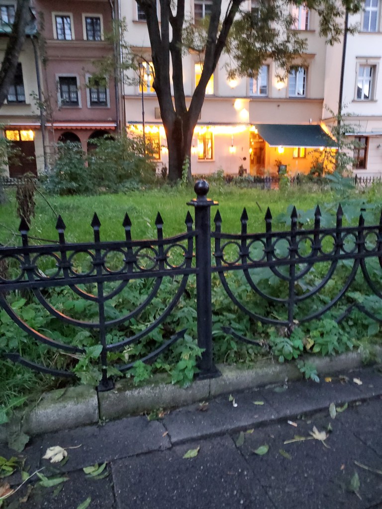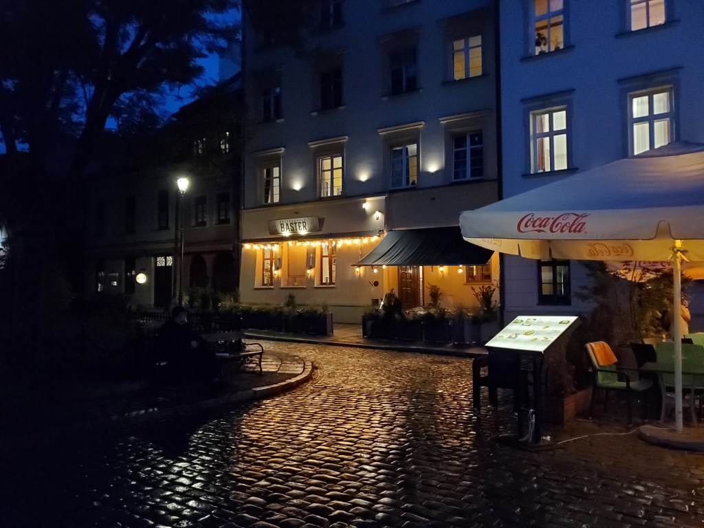 We got back to our room just in time to miss a torrential rainfall. We waited it out for about an hour and then walked in the opposite direction of the square to the Jewish Quarter, or Kazimierz. It was the center of Jewish life for 500 years, until it was systematically destroyed during World War II when the Jewish population was forcibly removed by the Nazis. Kazimierz received worldwide exposure through the lens of Steven Spielberg, who in 1993 shot much of the movie, Schindler’s List, there. The real Oskar Schindler’s factory is located in Krakow and now hosts a museum. The movie, and the fall of the Communist regime in 1989, created an opportunity for new investment and renovation of Kazimierz. Its historical Jewish sites have been restored and it is packed with cafes, restaurants and art galleries.
