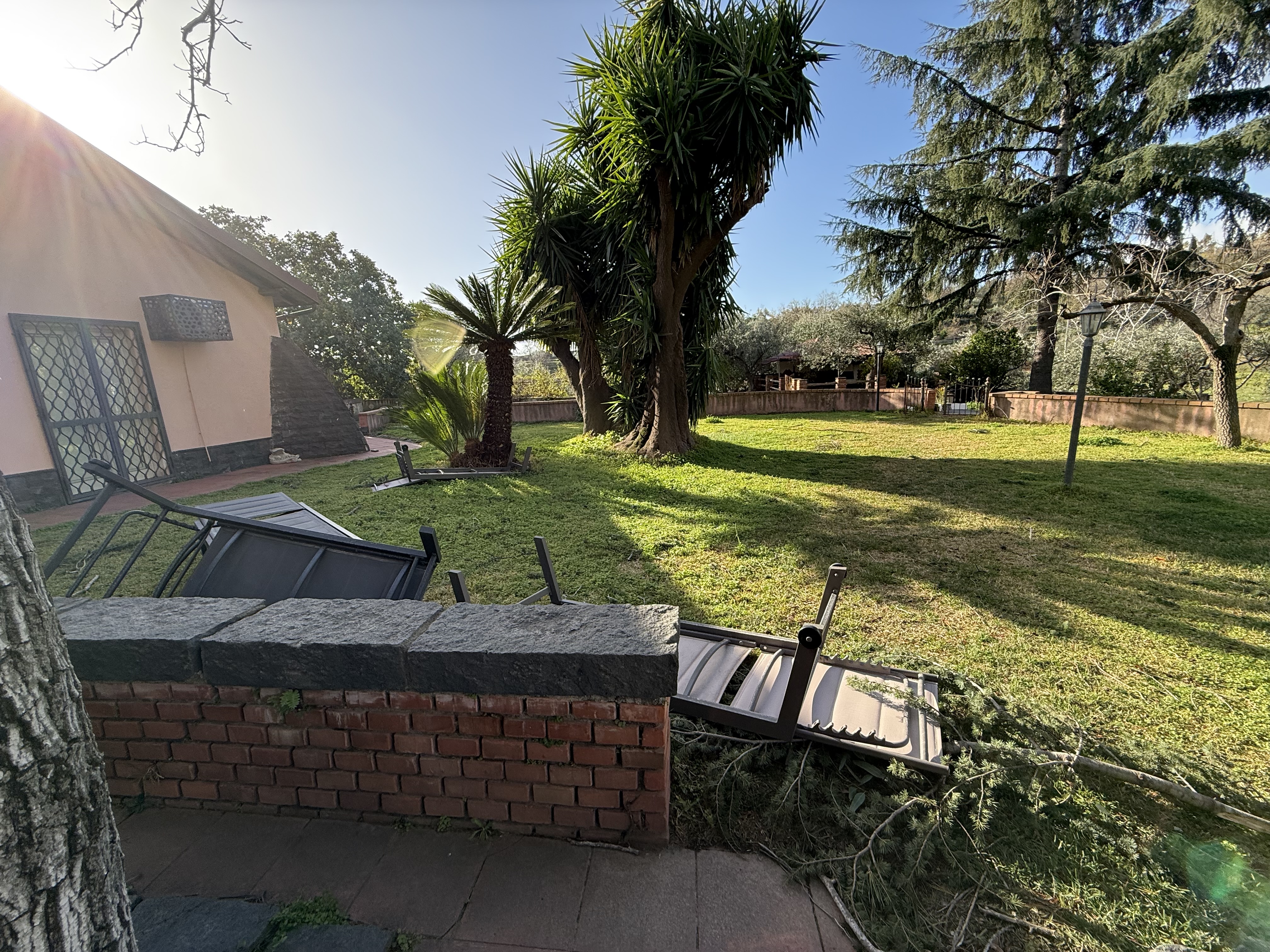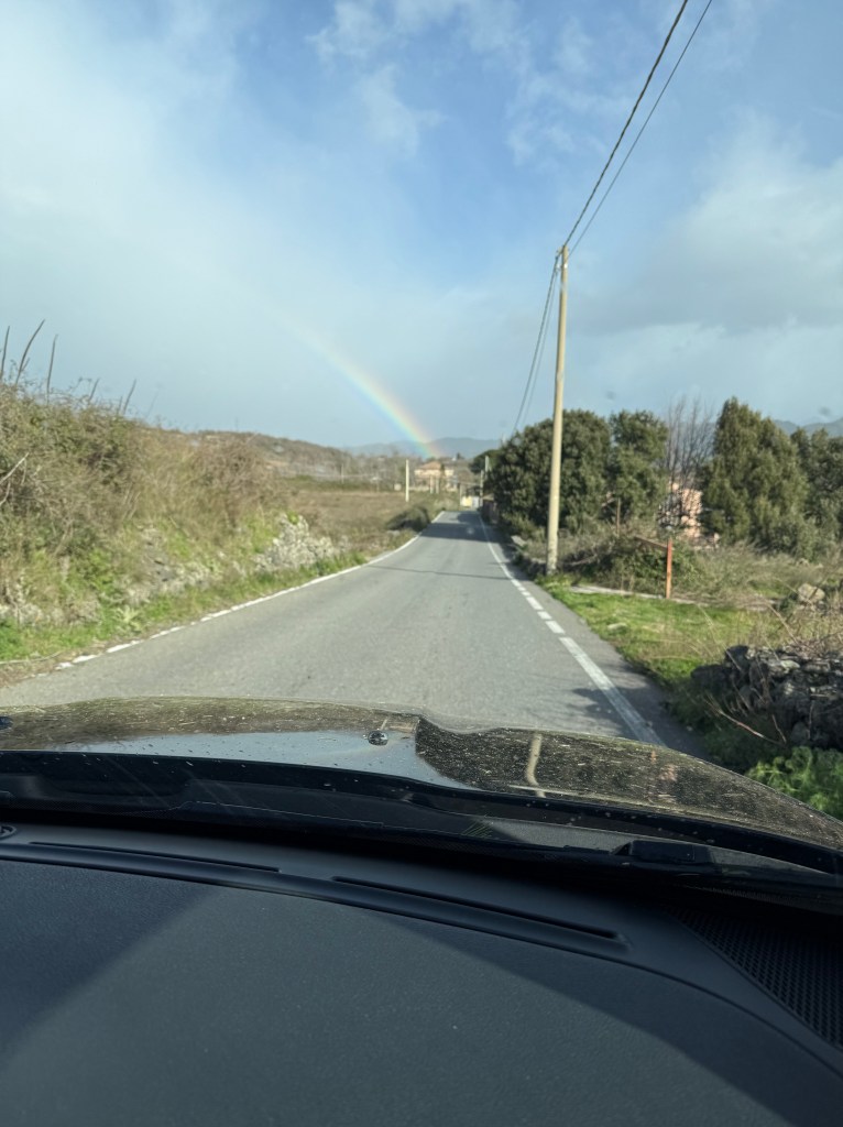 A taxi was scheduled to pick Sheri up at 3:45. At 2:30 the power went off, making it difficult to communicate because the internet was down. Getting a signal from either T-Mobile (us) or Verizon (Sheri) on that mountainside was challenging. Without power, there was no way to open the security gate at the end of the driveway and there is no other way out of the villa. I walked around the house until I could get a single bar of service and then messaged the owner of the vacation rental. He lives in the UK, so it was 3 a.m. for him as well. But he answered and told me about a key that could open the gate manually. When the driver arrived, we got the gate open, with debris flying all round us, and Sheri was off to the Catania airport. She later let us know that trees were down in the road all along the route.