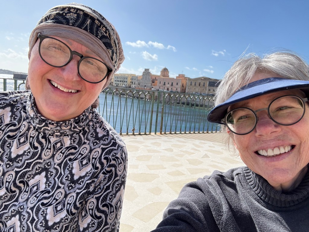 Betsy and I tried to rest a little knowing we had a travel day on Friday. The power never came back on, but we managed to pack up and get out by 9 a.m. headed to Siracusa/Ortigia. We also saw the results of the high winds along the way, including on the Auto Strada, which is Sicily’s answer to an interstate.