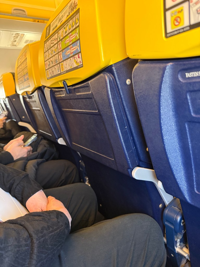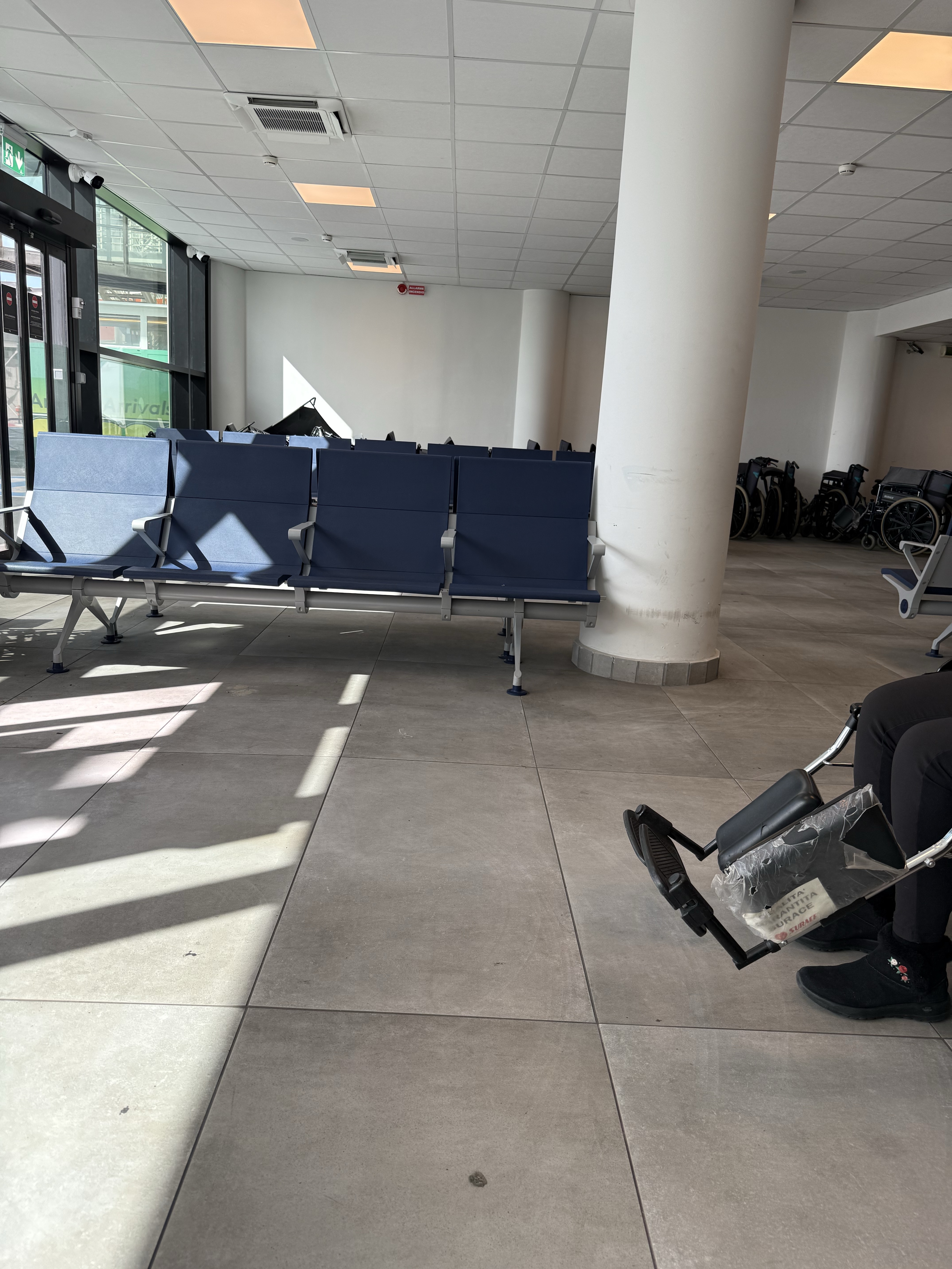 For almost three hours we waited in that hot and stuffy room. No water, no information. We watched people come and go and saw at least 20 employees of what seemed to be the wheelchair transport team sitting around watching their phones. About 30 minutes before flight departure time, I asked someone, using Google Translate, for some information and the response was, “It’s okay, you are in the right place.” About 10 minutes before our flight departure, the panic started setting in. One kind soul took notice and began making calls. Turns out our flight was delayed, but there were no announcements, no screens, no update in the Ryanair app, so we had no idea. Finally, someone did get us to the plane.