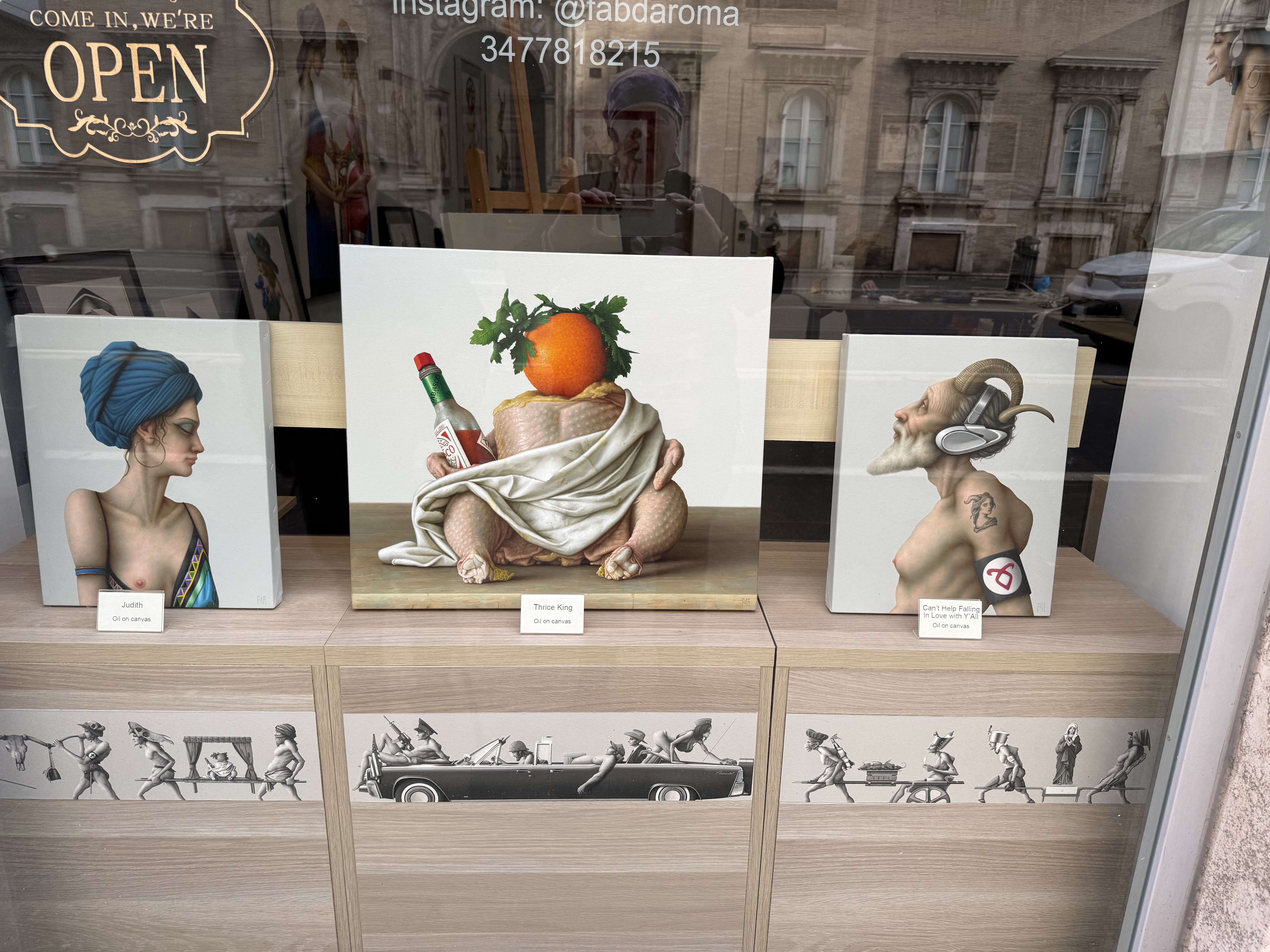 We walked by some modern art galleries on a pretty street near our lunch spot.