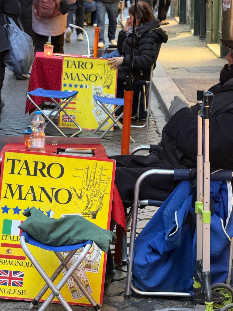 I thought about popping down at one of these tables for a reading, but the last one I had as a lark for Bonnie’s birthday didn’t go well for me, so I decided against it.