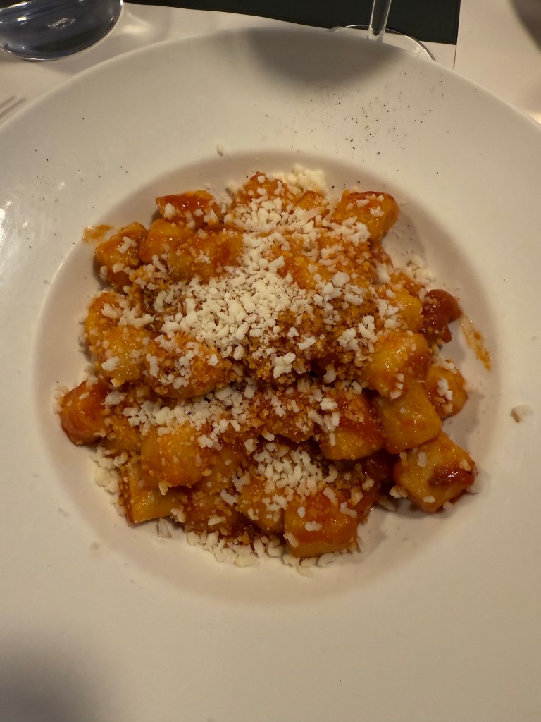 Betsy ordered the gnocchi she’s been craving. It was delicious.